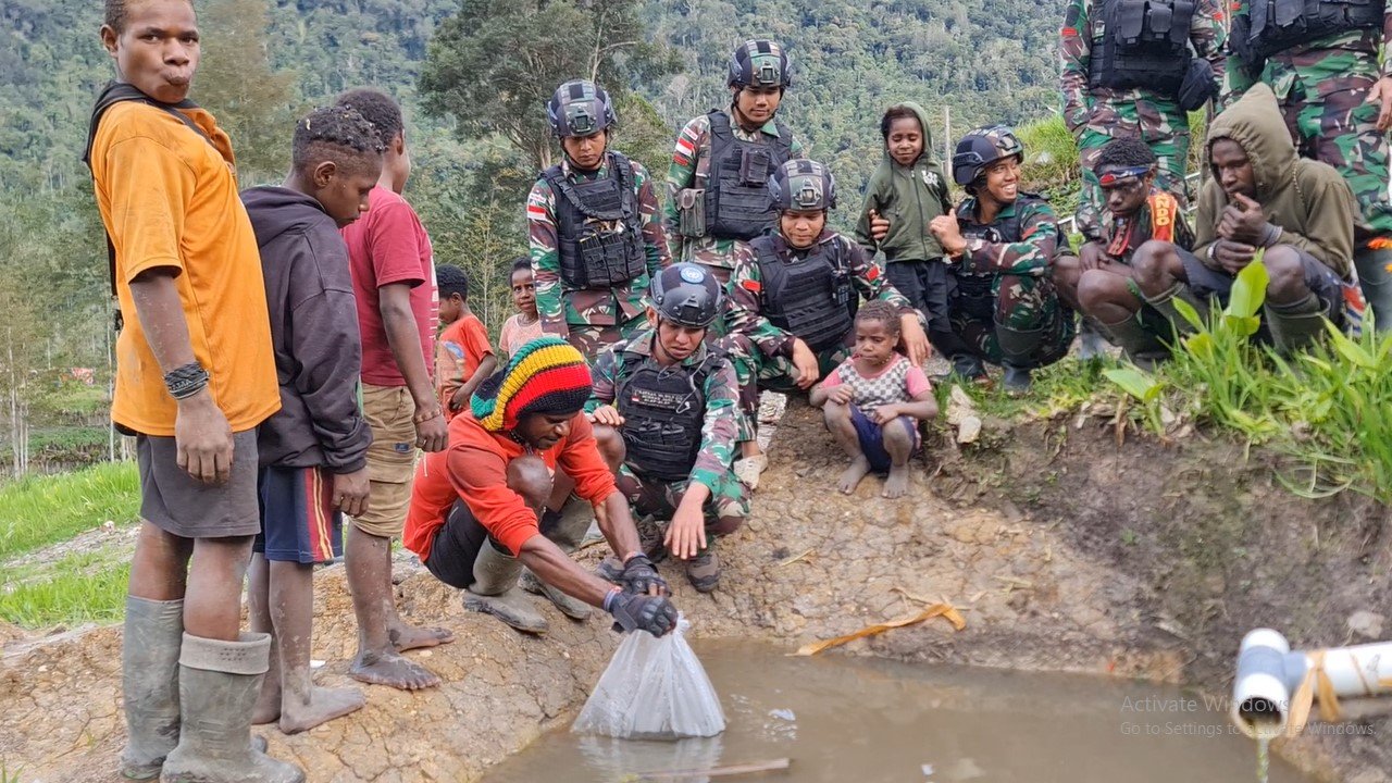 BN News | Kab. Puncak – Dalam rangka meningkatkan perekonomian masyarakat khususnya Para petani di daerah perbatasan Papua, Satgas satuan Organik Yonif Raider 303/SSM Pos Wuloni memberikan bantuan berupa bibit ikan kepada masyarakat Kampung Wuloni Distrik Ilaga Utara, Kabupaten Puncak. Papua, Jumat (6/1/2023)