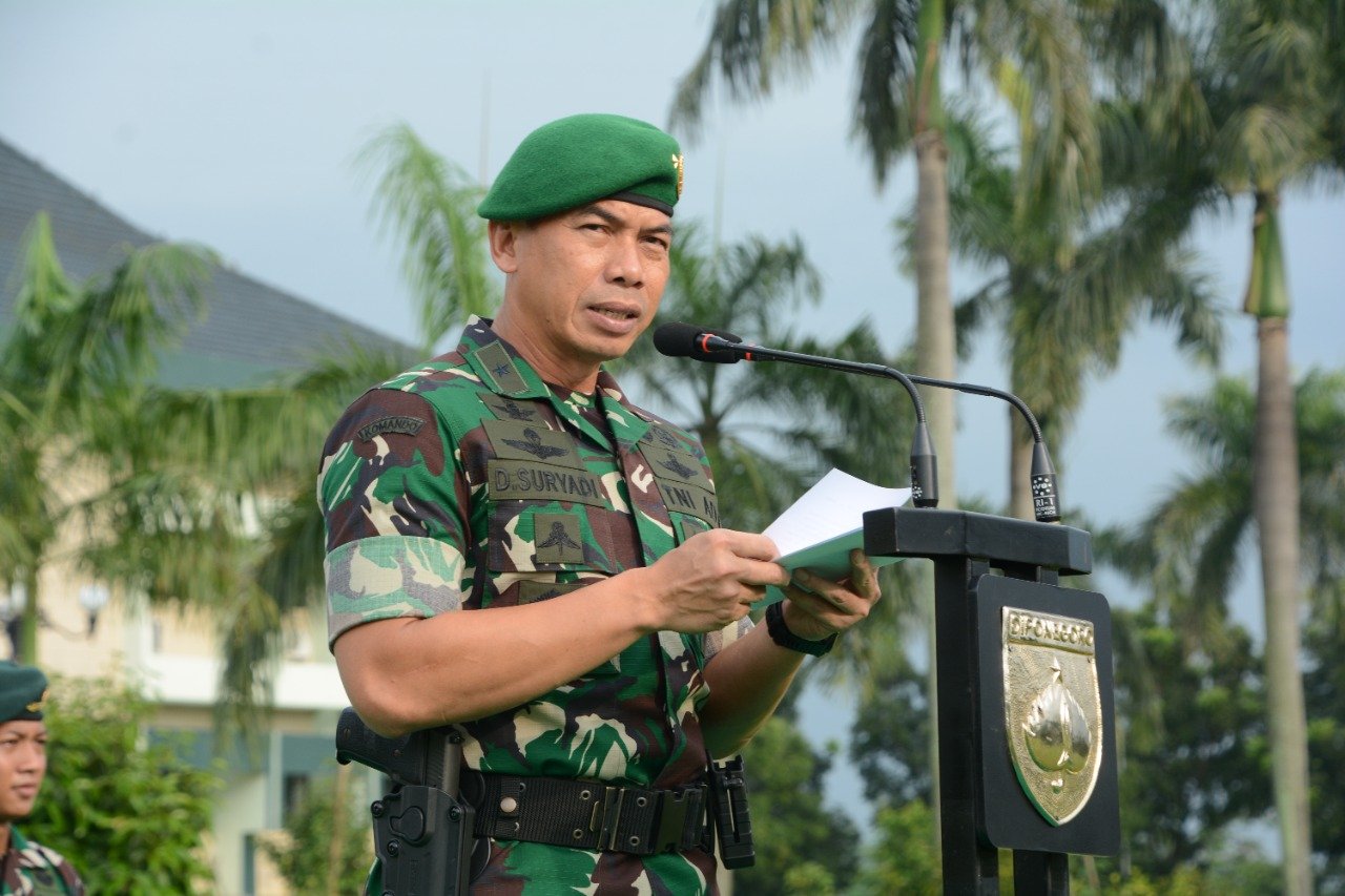 Dihadapan seluruh peserta Upacara, melalui amanat Panglima TNI Laksamana TNI Yudo Margono, S.E., M.M., Kasdam menerangkan saat ini situasi dan kondisi yang terjadi berkembang dengan cepat, dinamis dan tidak pasti. Sehingga berpotensi menimbulkan berbagai spektrum ancaman militer, non-militer maupun ancaman hibrida yang berpotensi mengganggu kedaulatan NKRI serta keselamatan Bangsa Indonesia.