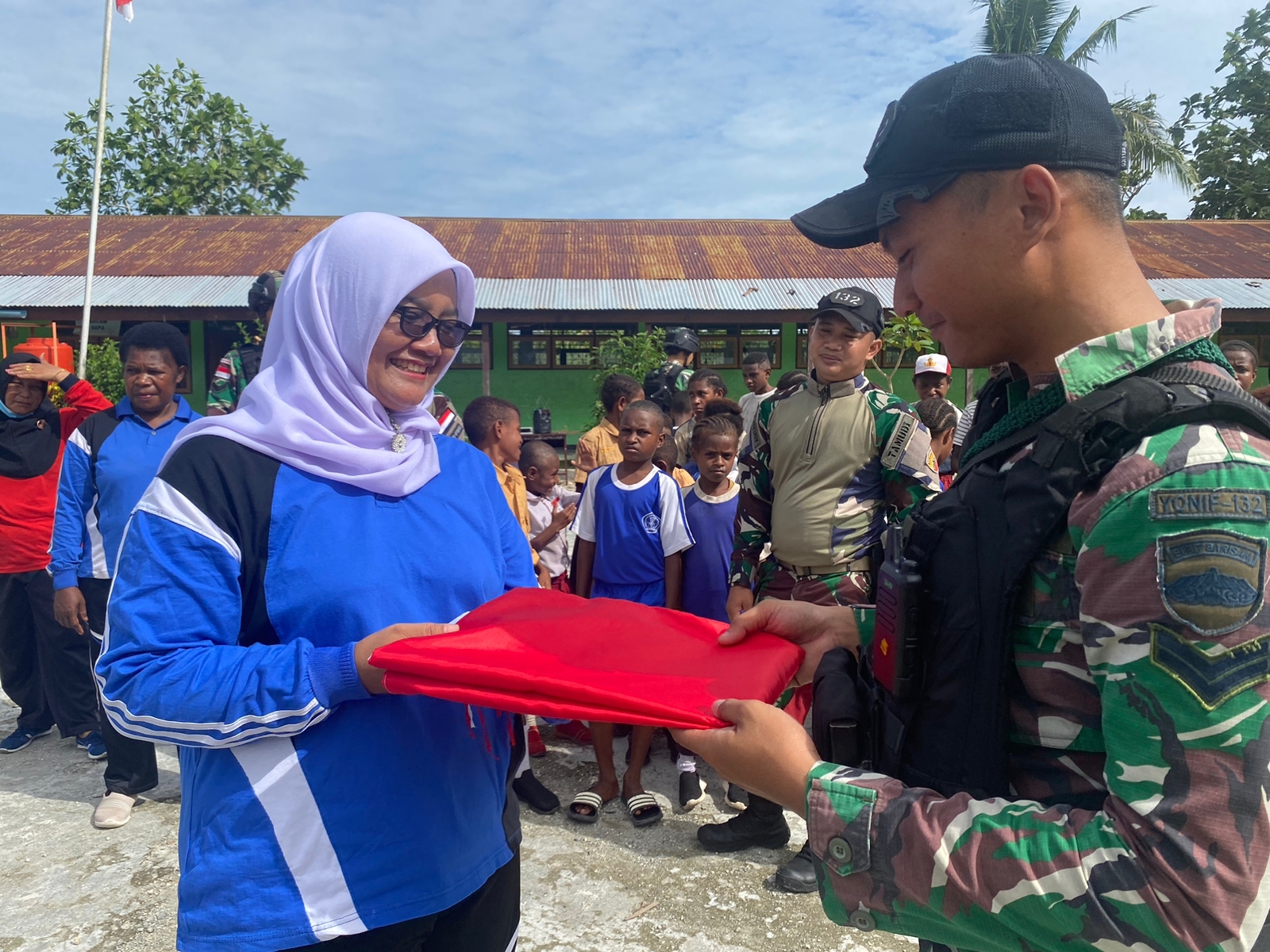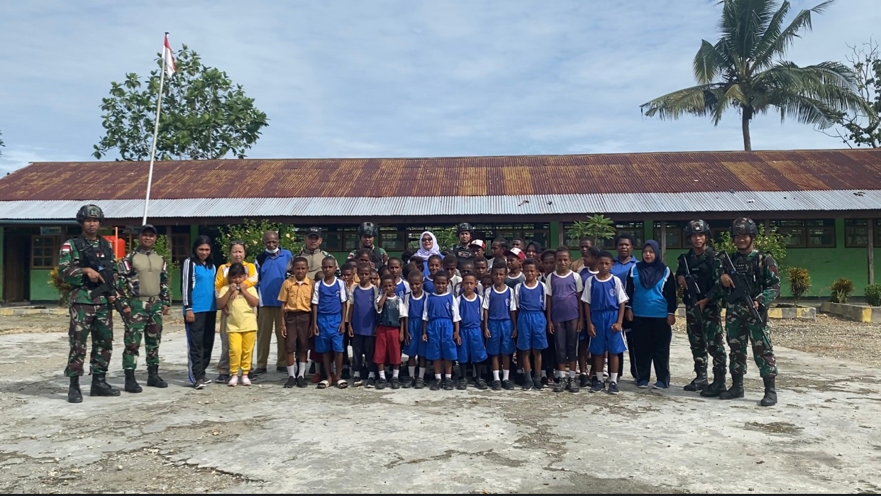 “tujuan lain dari kegiatan ini yakni menghadirkan suasana keceriaan dan keakraban siswa-siswi bersama personel satgas,” Ungkap Dankipur B.