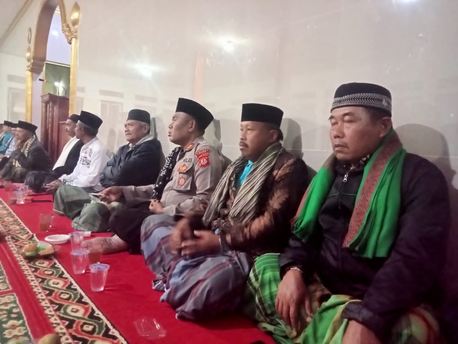 Ke datangan akp tio selaku kapolsek sukanagara ke masjid nurul barokah di sambut baik oleh kepala desa sukalaksana sunardi bersama ketua M.U.I DS sukalaksana ustd yusup mutakin dan ikatan remaja masjid mereka pada senang karena kapolsek hadir di tengah tengah acara mereka.
