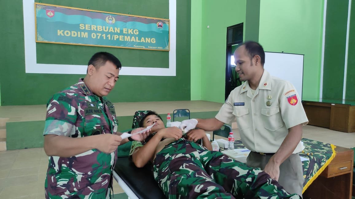 Pemeriksaan dilakukan oleh Rumah Sakit Tk. IV 04.07.01 Pagongan Tegal, Jl. RS DKT PAGONGAN TEGAL, Tegal, Jawa Tengah dengan pimpinan Lettu Ckm Nanang Aswadi (Paur Tuud Rumkit Tk IV) beserta 5 anggota. Kegiatan diikuti 71 anggota baik militer maupun PNS. Pada kesempatan itu hadir Letkol Inf Ade Afri Verdaniex, S.I.P., Dandim 0711/Pemalang untuk mengecek pelaksanaan tes EKG.