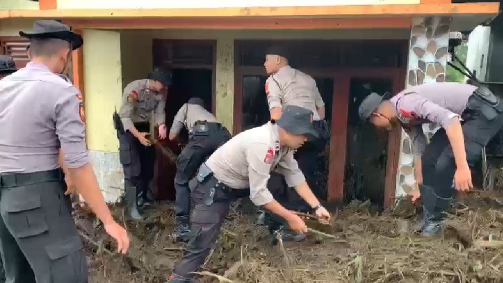 “Perlibatan personel dari Satsamapta dilakukan untuk membantu mempercepat proses evakuasi sisa banjir. Kegiatan dilakukan bersama dengan petugas dari BPBD, TNI, relawan dan masyarakat desa setempat,” jelasnya.