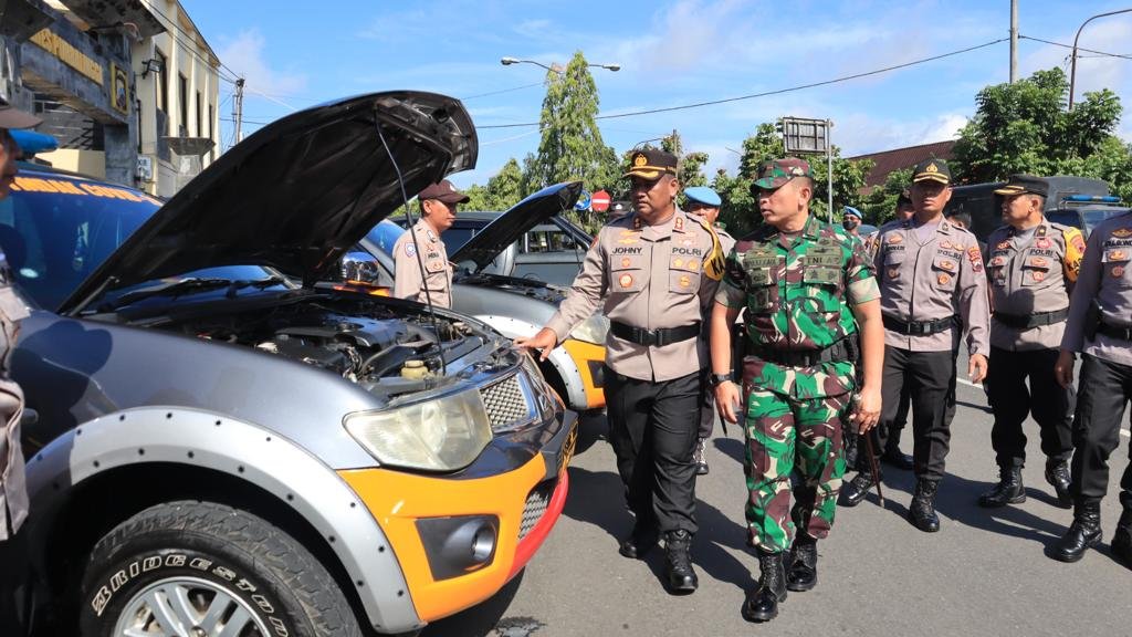 Usai apel dilakukan pengecekan sarana dan prasarana pendukung pelaksana tugas. Dilakukan pengecekan secara langsung oleh Kapolres dan Dandim mobil dan sepeda motor dinas yang dipakai dalam pelaksanaan tugas baik personel Polri maupun TNI.
