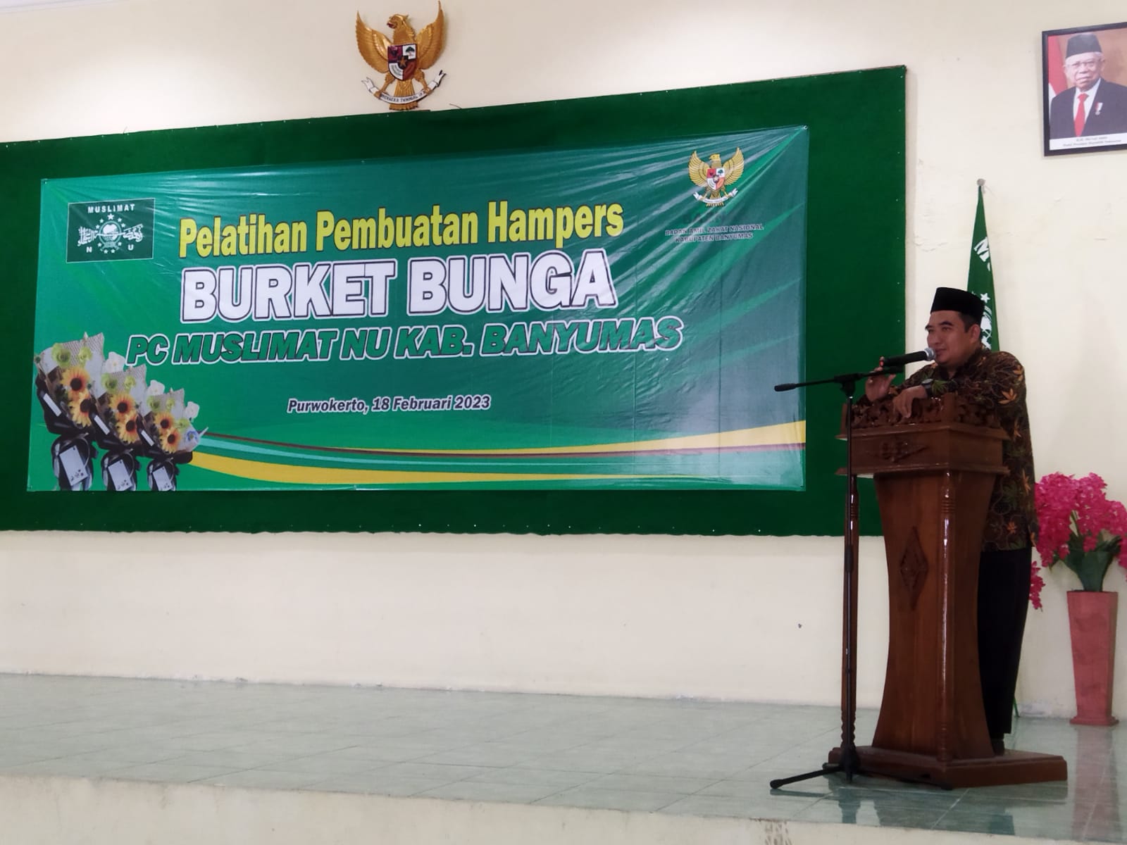 BN News. Banyumas || Pimpinan Cabang (PC) Muslimat Kabupaten Banyumas bekerja sama dengan Baznas Kabupaten Banyumas mengyelenggarakan pendidikan dan pelatihan pembuatan Hampers / Buket Bunga, bertempat di aula PC Muslimat Banyumas pada hari Sabtu 18 Pebruati 2023.