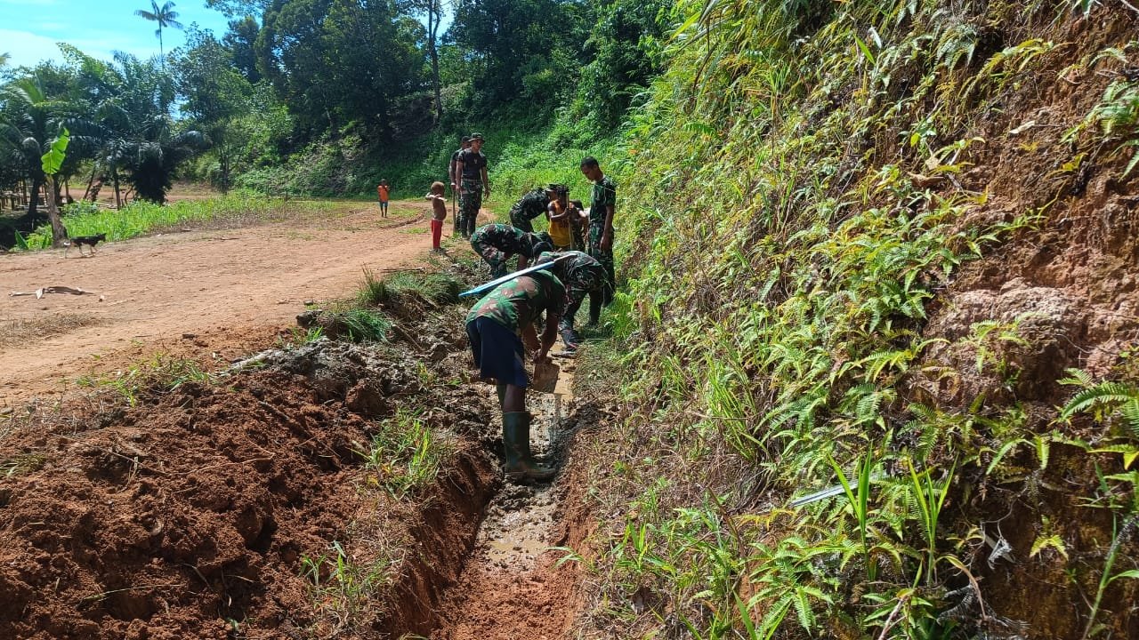 Komandan Satgas Yonif 725/Woroagi Letkol Inf Syafruddin Mutasidasi, S.E., mengungkapkan pembuatan saluran drainase guna mengantisipasi banjir di musim penghujan serta mengurangi genangan air yang menyebabkan banyaknya nyamuk.