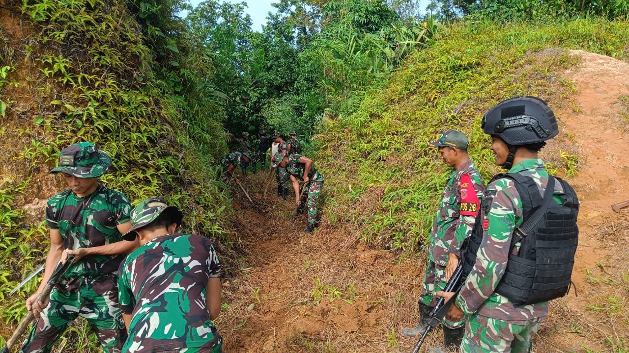 Bangun Semangat Kebersamaan, Satgas Yonif 725/Woroagi Buat Drainase Bersama Warga Perbatasan