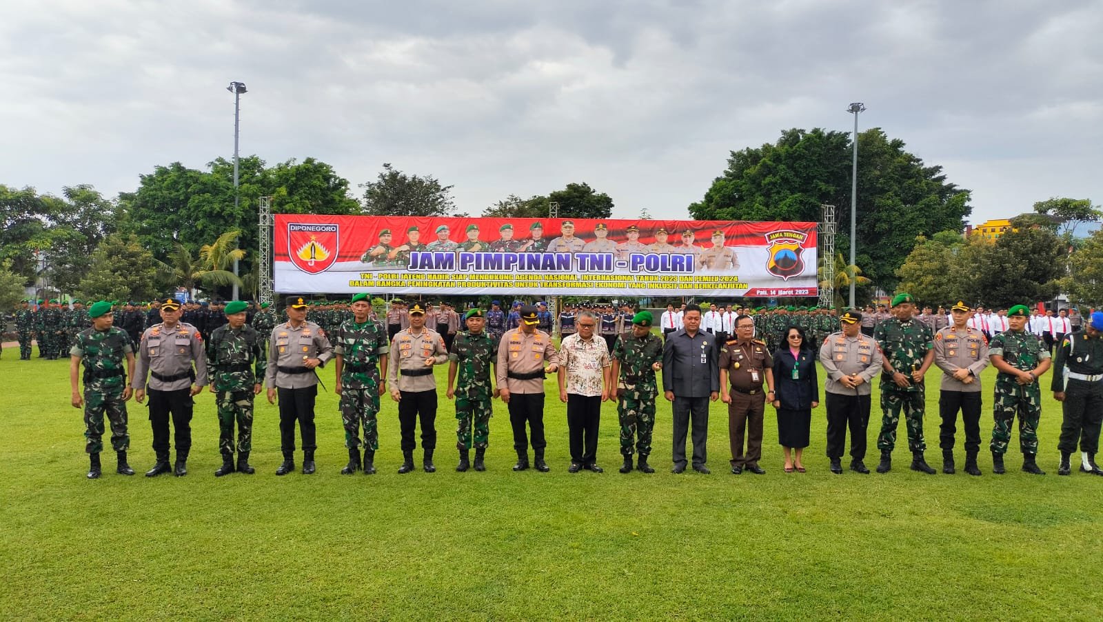 Mengusung Tema “TNI – POLRI Jateng Hadir Siap Mendukung Agenda Nasional, Internasional Tahun 2023 Dan Pemilu 2024 Dalam Rangka Peningkatan Produktivitas Untuk Transformasi Ekonomi Yang Inklusif Dan Berkelanjutan SE – EKS Wilayah Pati” dipusatkan di alun-alun Simpang Lima Pati. Selasa, (14/03/2023).
