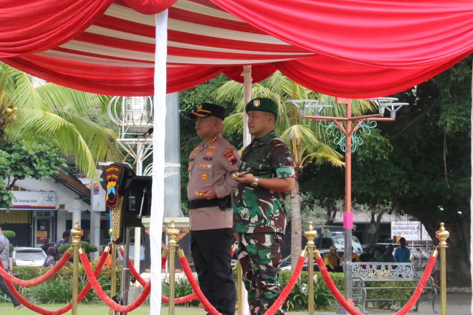 BN News. Pati || Dandim 0718/Pati Letkol Inf Catur Irawan, S.I.P M.I.P, bersama Kapolresta Pati Kombes Pol Andhika Bayu Adhittama, S.I.K., M.H menjadi Pimpinan Apel Jam Pimpinan TNI – POLRI Jawa Tengah Tahun 2023 untuk eks wilayah Pati.