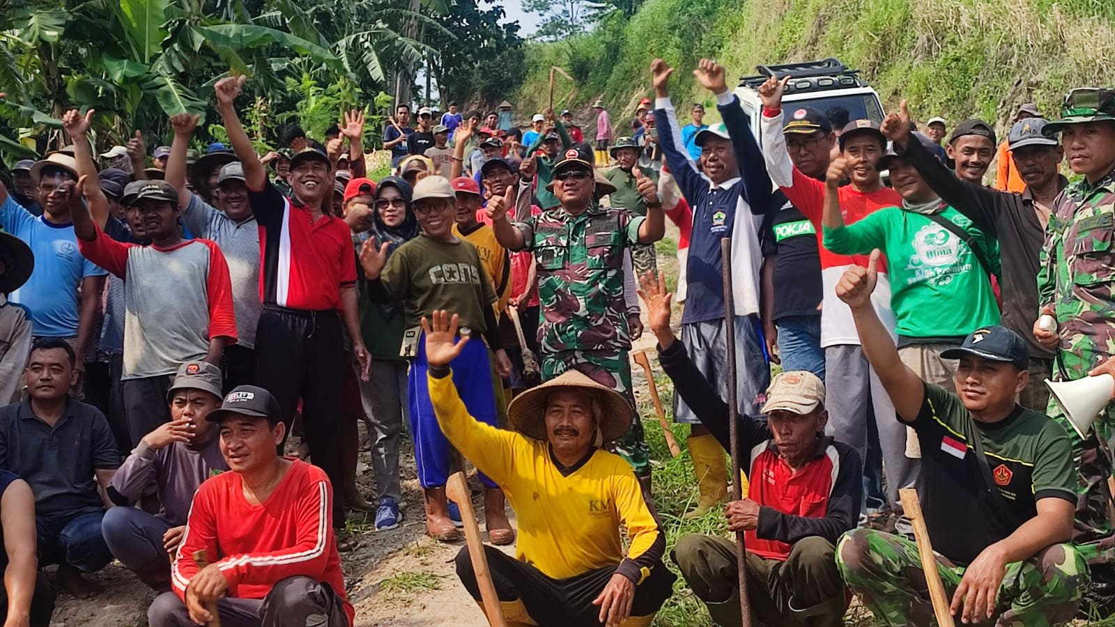 Kegiatan meliputi pemerataan tanah sepanjang jalan, meratakan makadam yang tidak rata, menyingkirkan batu-batu yang mengganggu, serta membersihkan rumput liar dan melebarkan jalan.