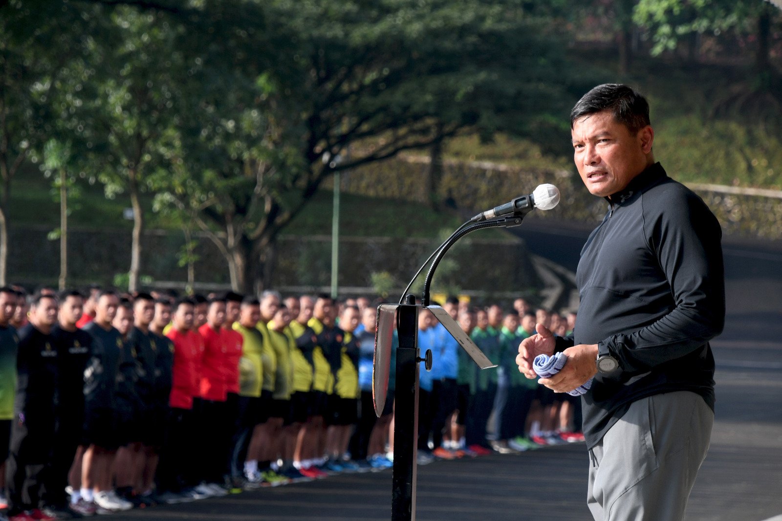 BN News. Semarang || Pangdam IV/Diponegoro Mayjen TNI Widi Prasetijono memberikan pengarahan kepada para prajurit dan PNS Kodam IV/Diponegoro saat apel olahraga bersama di Lapangan Parade, komplek Makodam IV/Diponegoro, Jl. Perintis Kemerdekaan, Watugong, Selasa (21/3/2023).