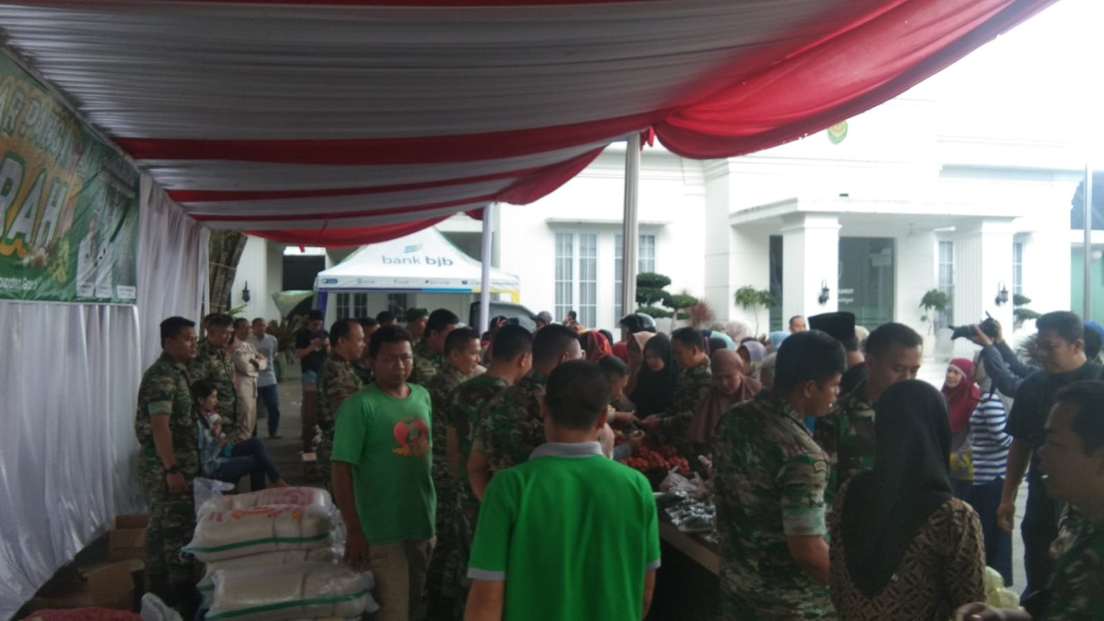 BN NEWS, Garut | Kodim 0611/Garut Bekerja sama dengan Dinas Ketahanan Pangan Kab. Garut dan UMKM binaan Kodim menggelar Bazar Murah di Depan Makodim 0611/Garut Jl. Veteran. Jumat (14/04/23)