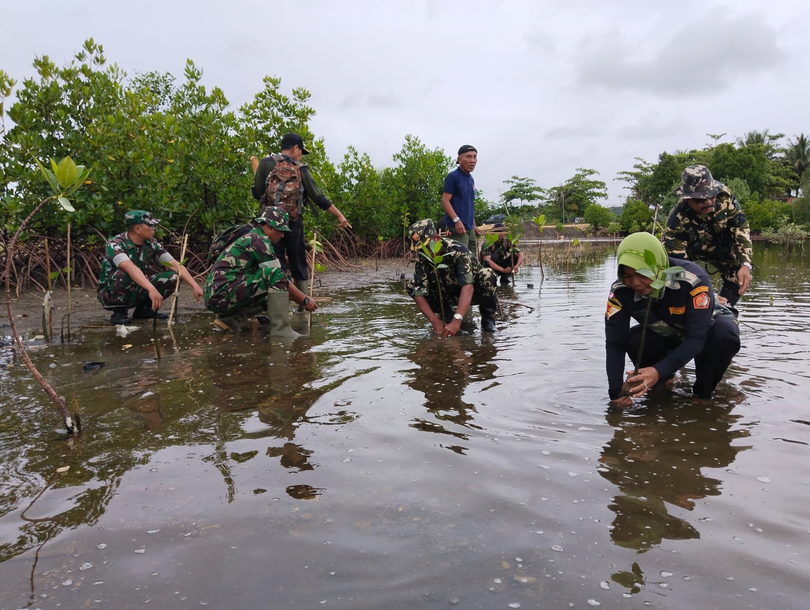 Kegiatan penanaman pohon mangrove dipimpin langsung oleh Pasiter Kodim 0625/Pangandaran, disela-sela penanaman menyampaikan bahwa penanaman pohon