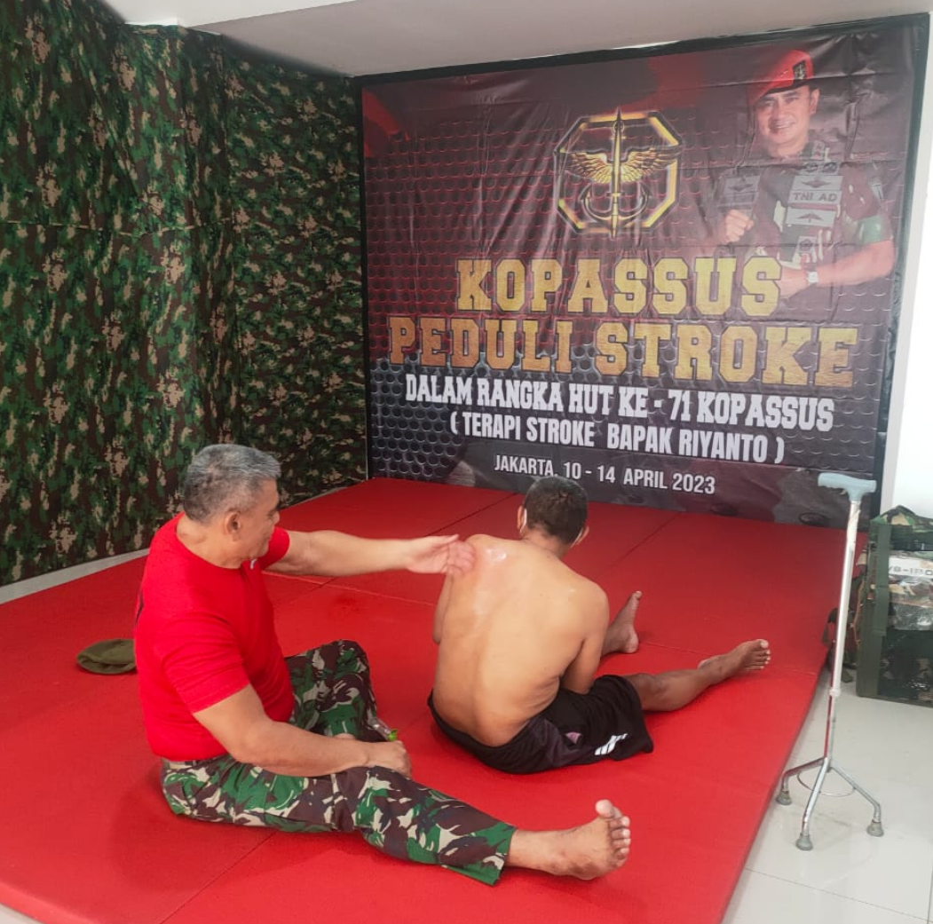 hal itu lah yang mendorong Kopassus membantu pengobatan para penderita stroke melalui cara pengobatan tradisional yaitu terapi.