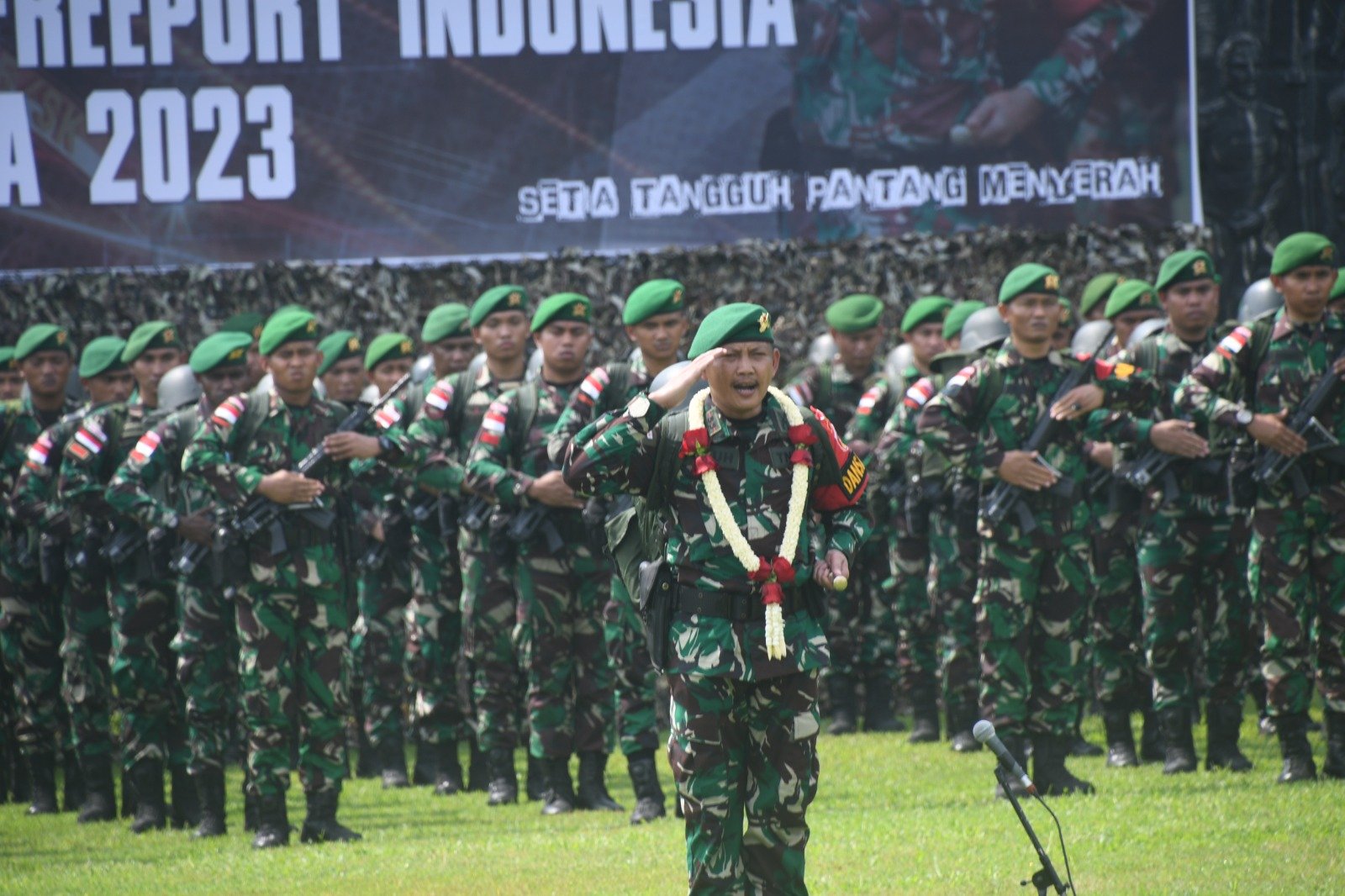 BN News. Semarang || Pangdam IV/Diponegoro Mayjen TNI Widi Prasetijono memimpin upacara penerimaan Satgas Yonif 405/Surya Kusuma yang telah selesai melaksanakan tugas dalam rangka Pengamanan Obyek Vital Nasional PT. Freeport Indonesia di wilayah Kab. Mimika. Upacara tersebut dilaksanakan di Lapangan Makodam IV/Diponegoro, Jl. Perintis Kemerdekaan, Watugong, Senin (17/4/2023).