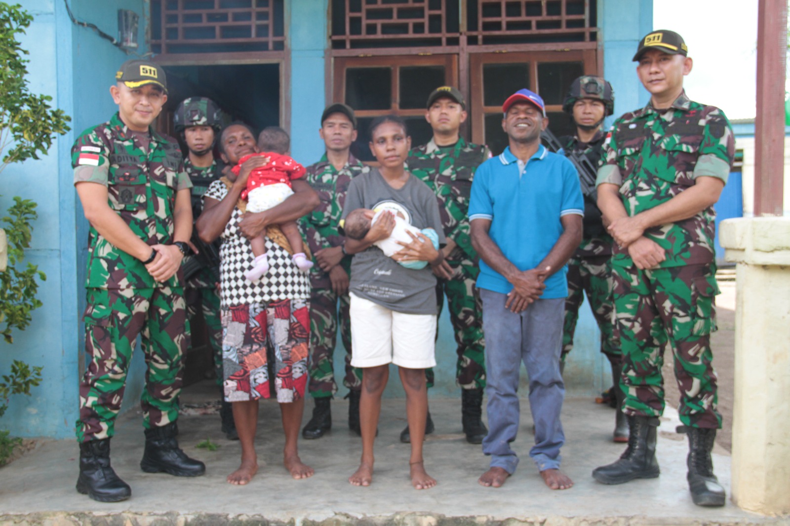 BN NEWS, Merauke || Peduli terhadap tumbuh kembang generasi penerus Bangsa Indonesia di Papua, Satgas Pamtas Statis RI-PNG Yonif 511/DY yang dipimpin oleh Wadansatgas, Mayor Inf Aditya Kurnia Rahman beserta Dantonkes, Pakum dan personel kesehatan Pos Komando Utama (Kout) mengunjungi rumah keluarga Bapak Billy Matemko, dimana beberapa bulan yang lalu istri beserta adik iparnya melahirkan bayi pada bulan September 2022 dan Februari 2023 yang semua proses persalinannya dibantu oleh Personel Kesehatan Pos Kout Satgas Yonif 511/DY bersama bidan Puskesmas di Kampung Bupul, Distrik Elikobel, Kabupaten Merauke, Rabu (19/04/2023).