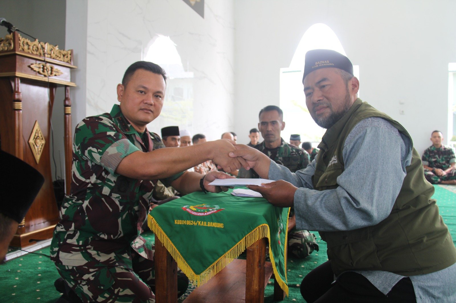 BN NEWS || Kab. Bandung – Dandim 0624/Kab Bandung Letkol Inf Hamzah Budi Susanto SE, M.I.P., menitipkan zakat fitrah prajurit dan PNS Kodim 0624/Kab. Bandung kepada Baznas Kab. Bandung bertempat di Masjid Al – Ikhlas, Jln Raya Soreang Cipatik, Kab. Bandung, Jabar, Selasa (18/04).
