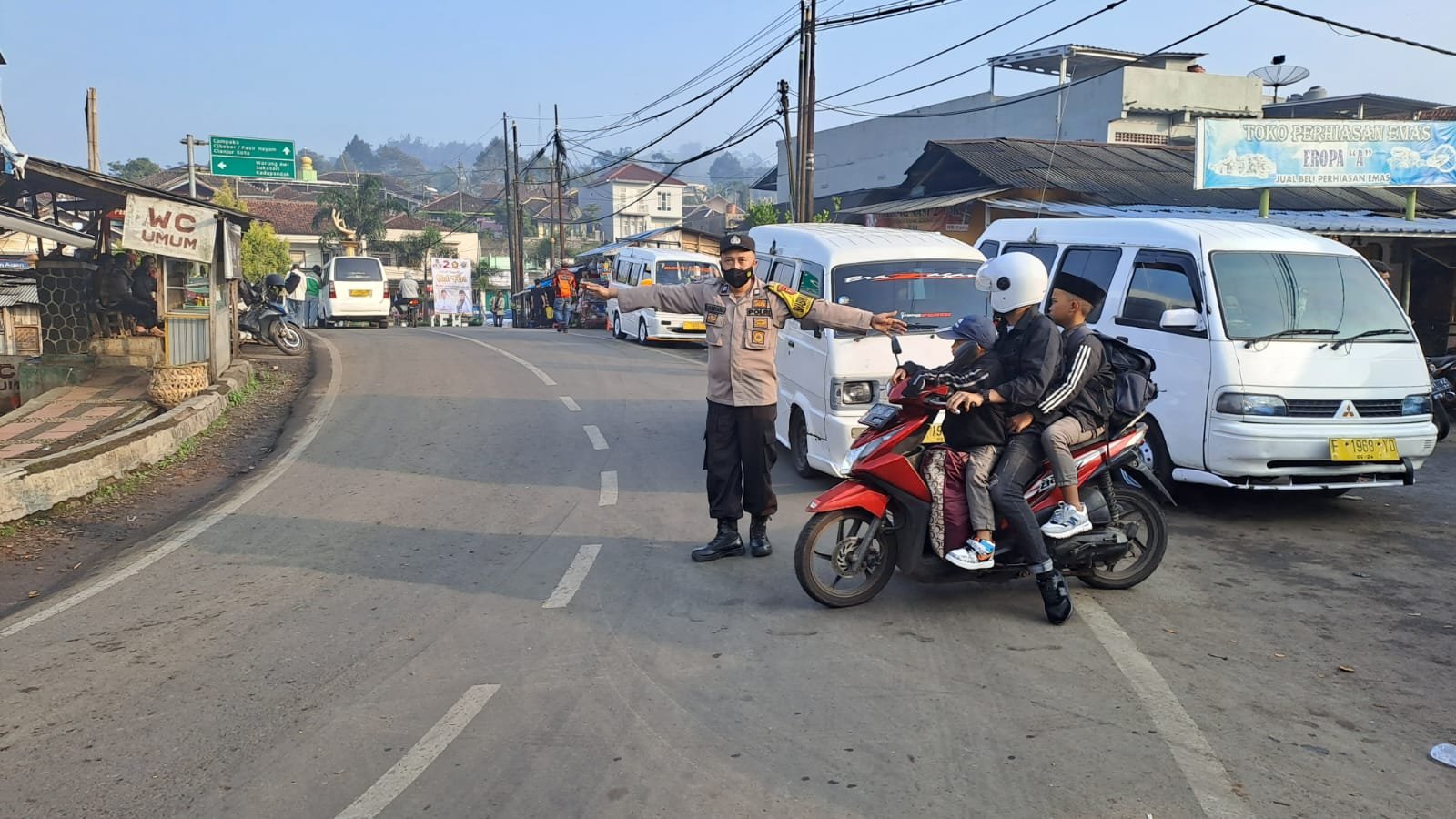 BN NEWS | Cianjur – Optimalkan kinerja Bhabinkamtibmas saat Ops Ketupat Lodaya 2023 berlangsung, personel Bhabinkamtibmas Polsek Jajaran Polres Cianjur lakukan gatur lalulintas arus mudik, Kamis (20/04/2023).
