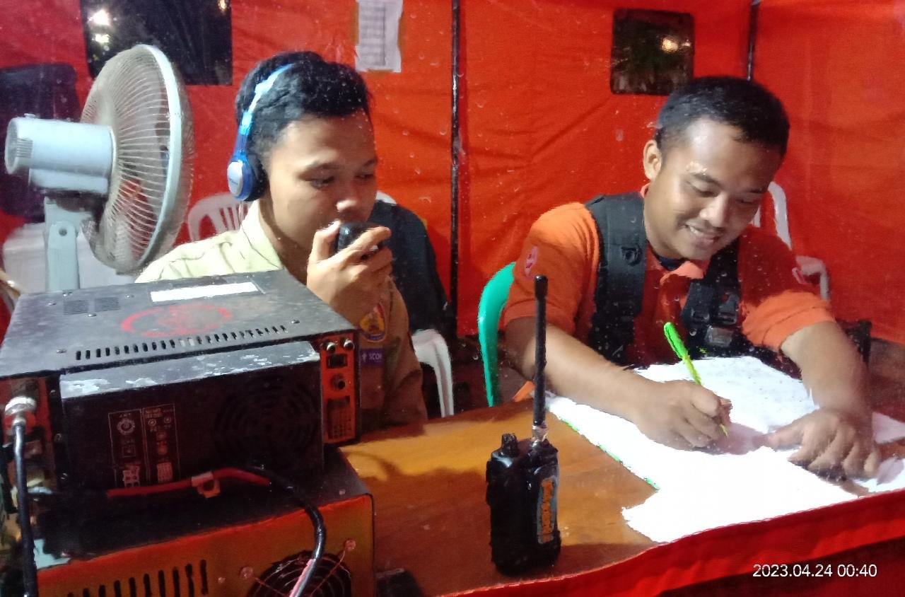 Dua anggota ORARI Banyumas yang sedang piket dukom sebagai operator Radio, pada pos induk di Alun-alun Purwokerto Eko (YG2BLB) dan Aziz (YG2BJP), ditemui awak media di lokasi, Senin (24/04/2023) jam 00:45 Wib, menyampaikan posko dukom ORARI didirikan denga tenda orange, berdampingan tenda Posko terpadu, di atas trotoar alun-alun sisi selatan, Jl Jenderal Sudirman Purwokerto, dari tanggal 18 April – 01 Mei 2023.