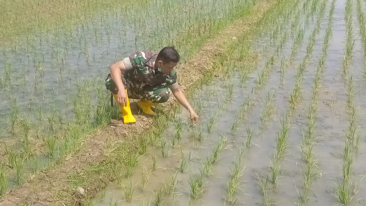 BN News. Pemalang || Serma Mulyono anggota Star Teritorial Kodim 0711/Pemalang melaksanakan kegiatan perawatan dan pengawasan tanaman padi dilahan demplot Kodim seluas 2 hektar yang berlokasi di dukuh Pekandangan Desa Widodaren, kecamatan Petarukan kabupaten Pemalang, Kamis (11/05/2023).