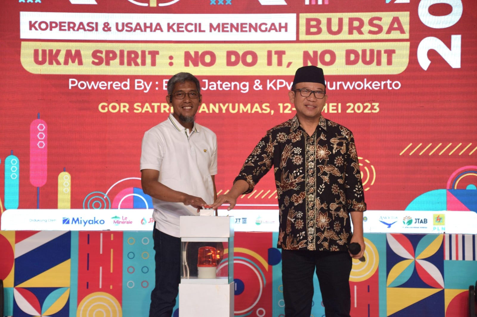 BN News. Banyumas || Bupati Banyumas Achmad Husein bersama Sekretaris Daerah Provinsi Jateng Sumarno menutup Bursa Koperasi dan UMKM (KUKM) Pemerintah Provinsi Jawa Tengah di GOR Satria Purwokerto Minggu (14/5/2023). Hingga Minggu siang, transaksi produk UMKM mencapai sekitar Rp500 juta.
