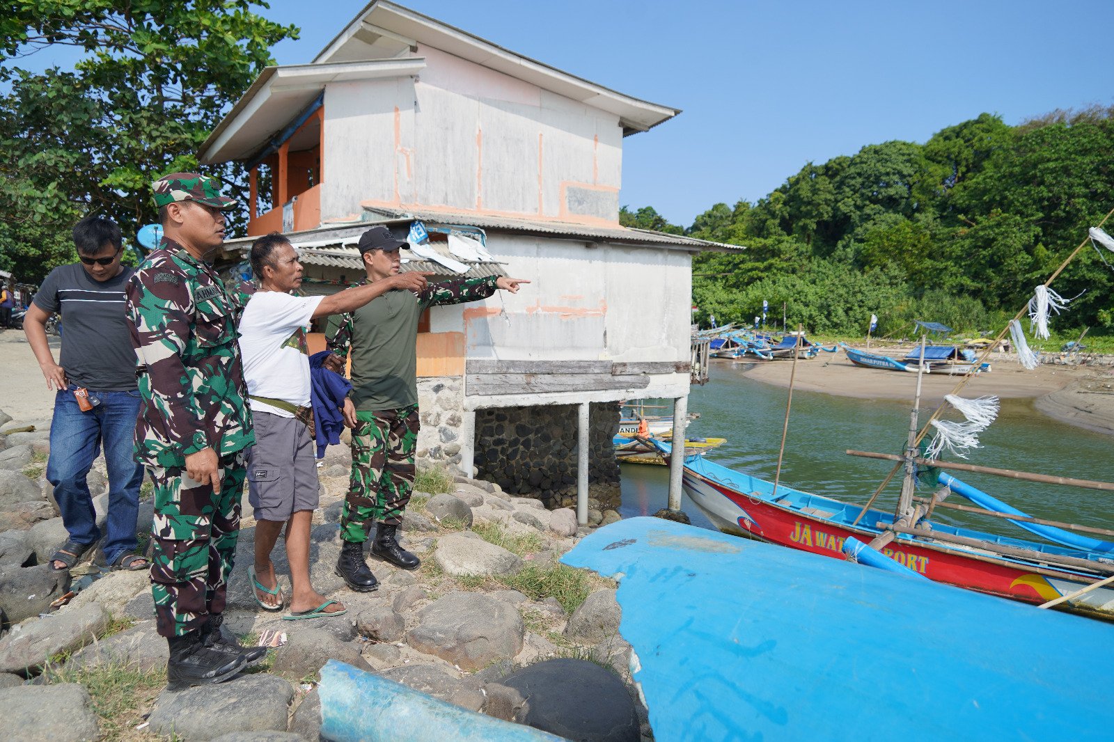 Danramil 1118/Cisompet Kapten Cba Syamsudin, Danramil 1123/Cisewu Kapten Chb Sobirin, perwakilan Babinsa dan masyarakat nelayan Santolo. (Penrem 062/ Tn).