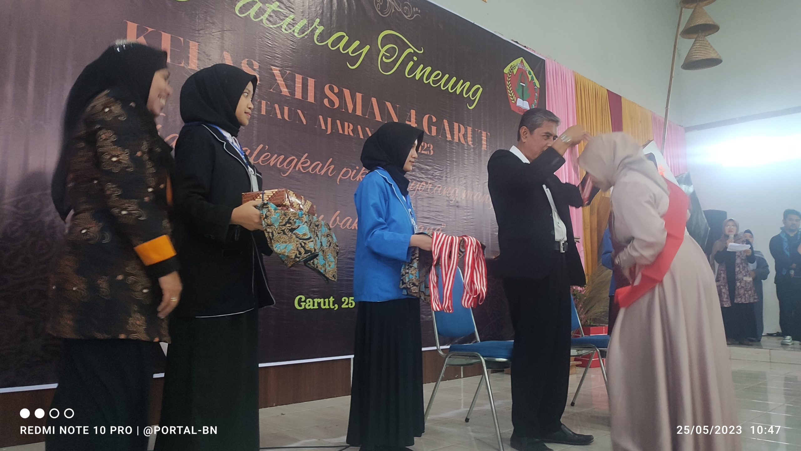 “Kami juga ucapkan selamat atas kelulusan kepada siswa dan siswi kelas XII yang telah menempuh pendidikan di SMA Negeri 4 Garut dengan segala lika likunya. Dari SMA Negeri 4 Garut ini untuk tahun pelajaran 2023 ada beberapa peserta didik yang lolos ke perguruan tinggi negeri melalui jalur penilaian raport. Saya ucapkan terima kasih kepada bapak dan ibu yang telah membimbingnya dan saya selamat kepada anak-anakku sekalian yang tadi yang sudah dapat diterima di perguruan tinggi negeri,” sambung Enay Kusnarya.