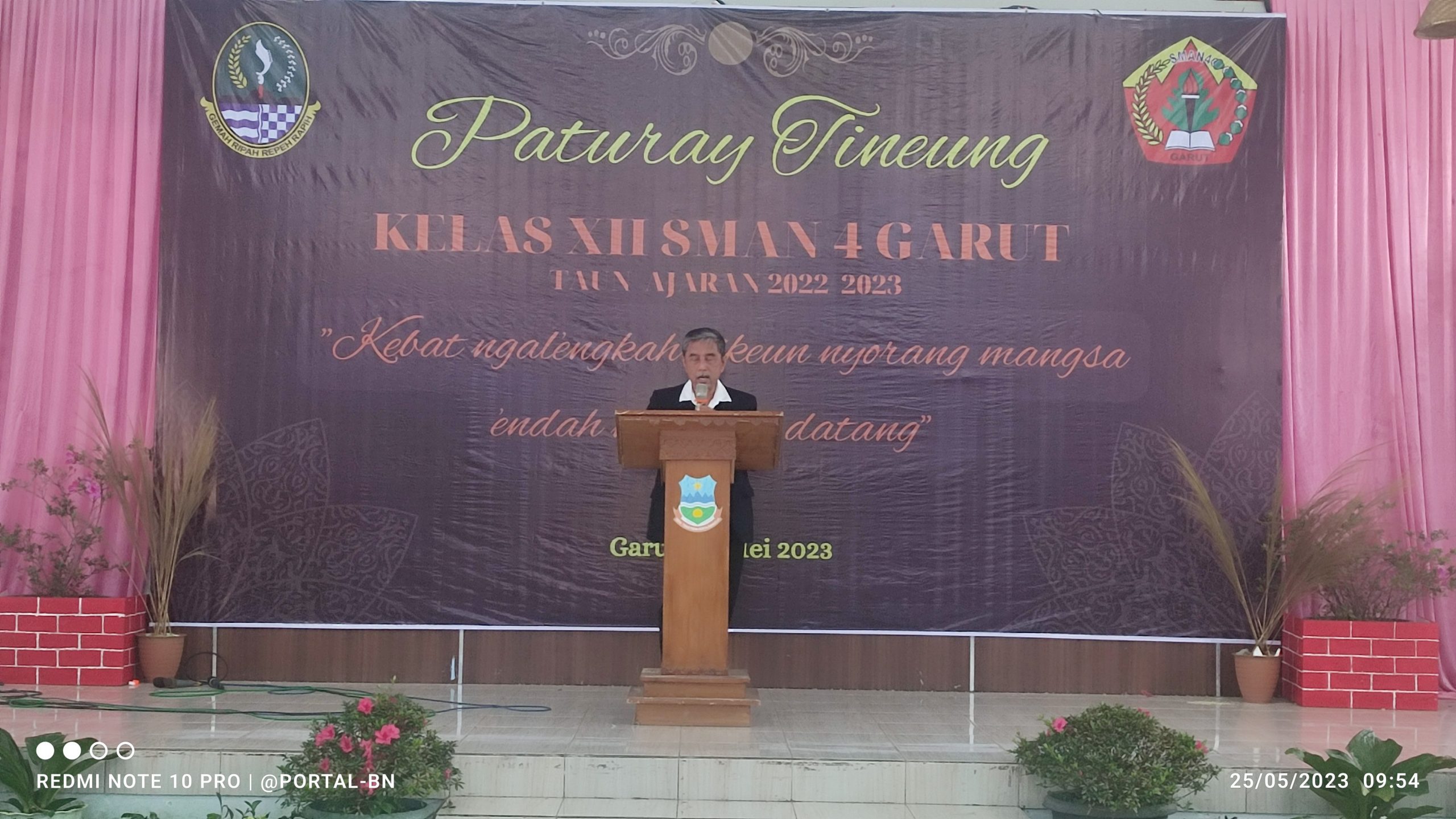 BN NEWS || GARUT – Jadilah Agen Perubahan, jagalah marwah dan nama baik sekolah dimanapun kalian nanti berada. Kalimat tersebut menjadi salah satu kalimat yang disampaikan oleh Kepala Sekolah SMA Negeri 4 Garut Drs H Enay Kusnarya, M.Si., saat menyampaikan sambutan dalam gelaran Paturay Tineung Kelas XII SMA Negeri 4 Garut Tahun Ajaran 2022-2023 yang dilaksanakan di Balai Kemasyarakatan Desa Giriawas, Kecamatan Cikajang, Kabupaten Garut. Kamis (25/5/2023)