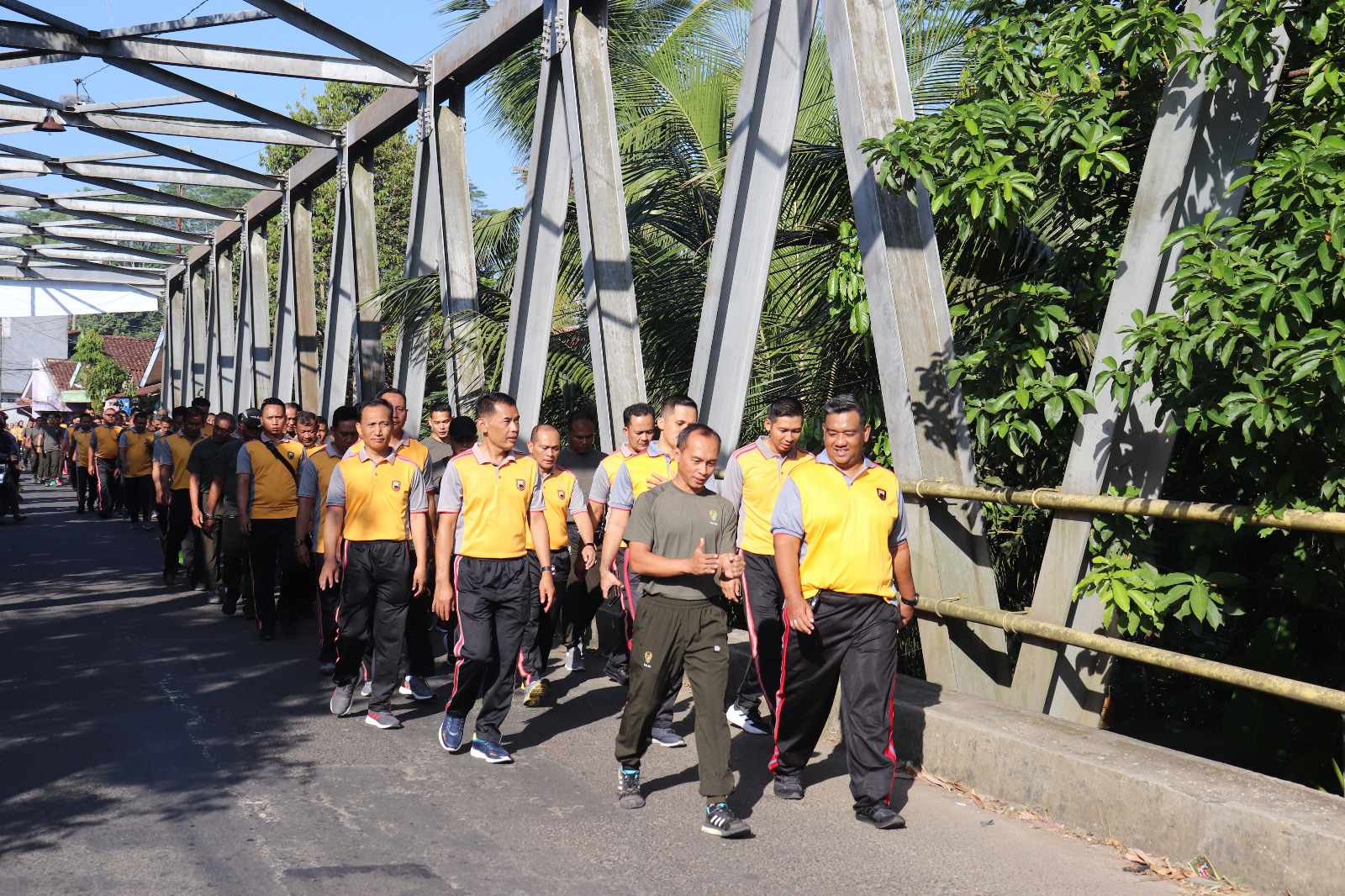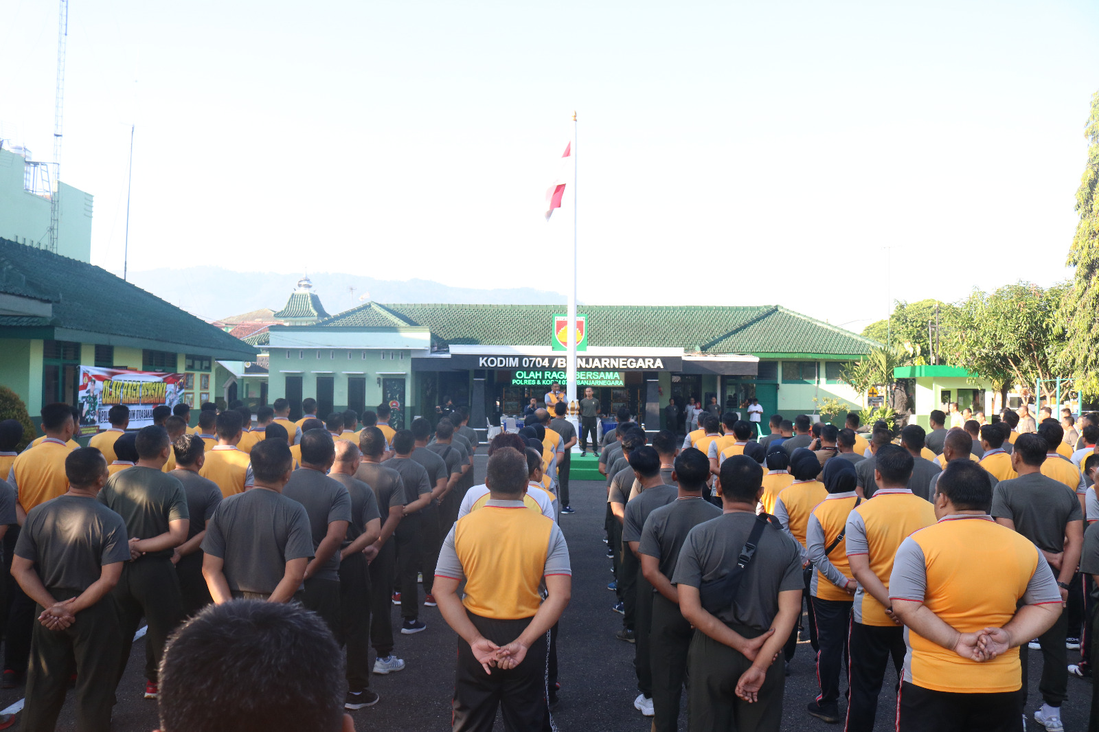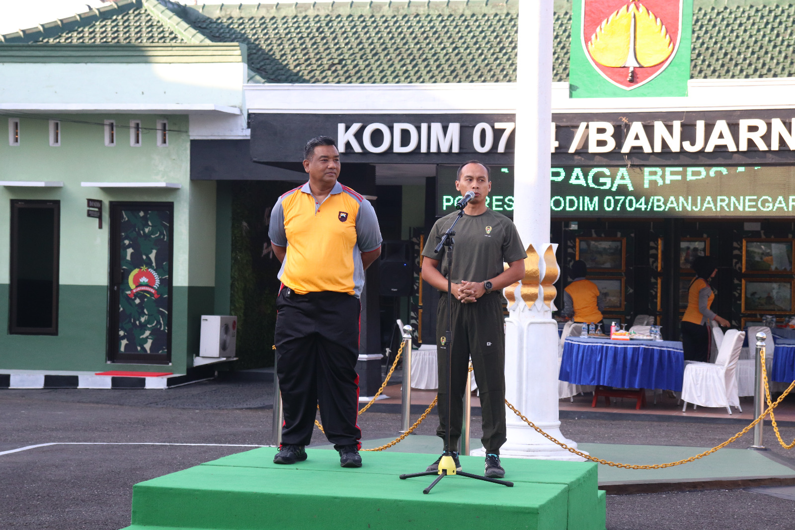 Dandim 0704/Banjarnegara menyambut kedatangan Kapolres Banjarnegara dan jajaran Polres di Kodim 0704/Banjarnegara untuk melaksanakan kegiatan olahraga bersama untuk kesehatan kita semua. Dandim juga menjelaskan bahwa acara ini merupakan ajang silaturahmi yang penting.