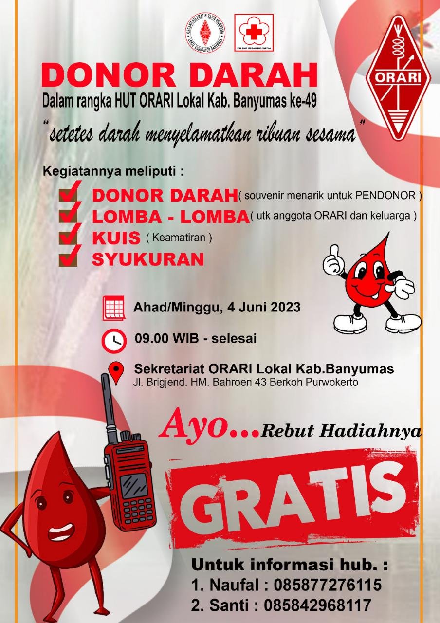 BN News. BANYUMAS || ORARI (Organisasi Amatir Radio Indonesia) adalah wadah bagi yang memiliki hobby komunikasi radio dan teknik elektronika. Organisasi tunggal bagi segenap Amatir Radio Indonesia yang bersifat mandiri, sosial, non-komersial dan non-politik.