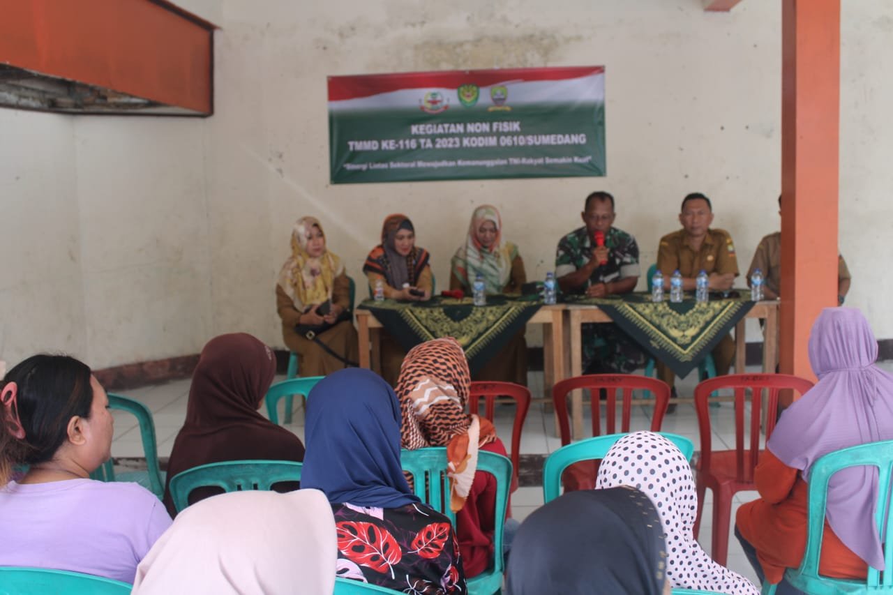 PORTALBELANEGARA.COM || Sumedang – Dinas Lingkungan Hidup dan Kebersihan (LHK) Kabupaten Sumedang gelar sosialisasi pengolahan sampah dalam rangka mendukung kegiatan TMMD ke-116 Kodim 0610/ Sumedang, yakni di Aula Desa Wanajaya, Kecamatan Surian, Senin (5/6/2023).