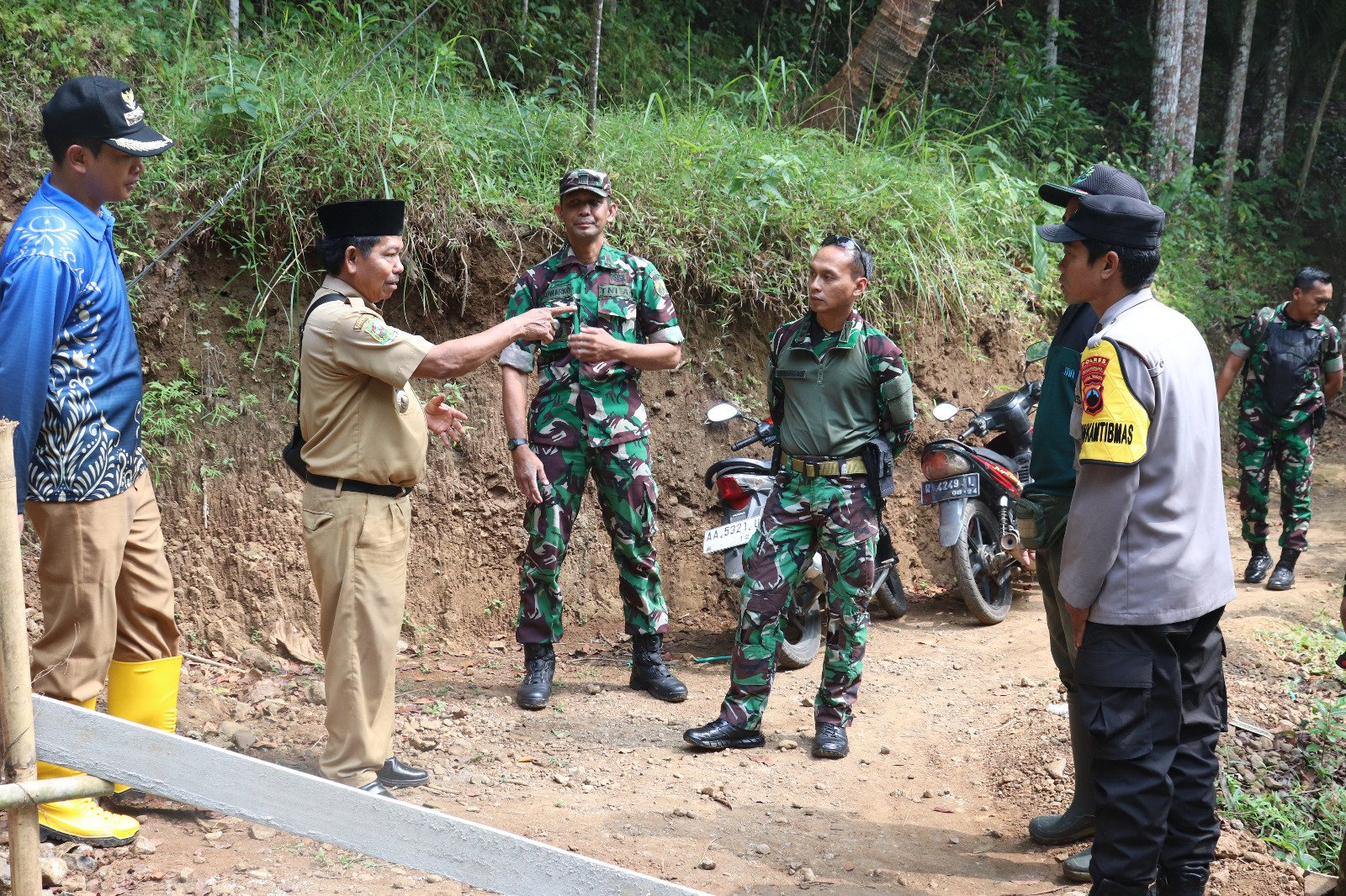 Dandim menyampaikan, “lokasi TMMD dan kegiatan pra TMMD Sengkuyung Tahap II TA 2023, cukup lumayan, untuk medannya cukup menantang tapi saya lihat disitu betapa masyarakat itu bergotong royong bahu membahu semua unsur baik TNI Polri masyarakat bahkan dari berbagai unsur juga ada ormas yang sangat luar biasanya ibu ibu juga ikut berpartisipasi dengan semangat yang luar biasa dan saya lihat tidak ada satu raut muka pun yang manyun artinya mereka bergembira”, jelasnya.