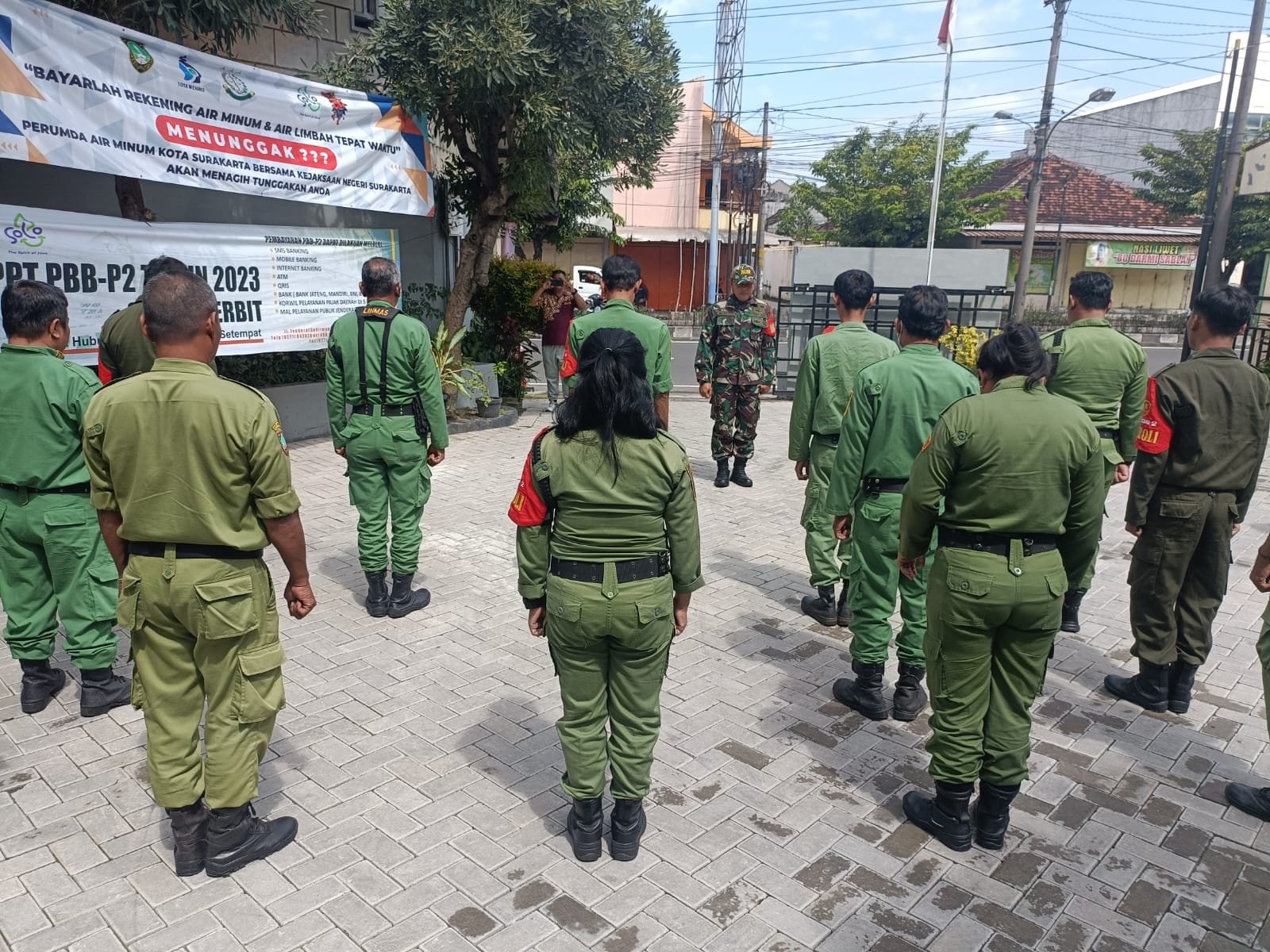 BN News. Surakarta || Babinsa Kelurahan Danukusuman Sertu Rochani dan Serda tito Koramil 03/Serengan Kodim 0735/Surakarta melaksanakan kegiatan pembinaan dengan cara mengambil Apel Pagi Anggota Linmas Kelurahan dan sekaligus melatihkan sikap Disiplin dengan cara latih Peraturan Baris Berbaris (PBB), Kamis (22/06/2023).