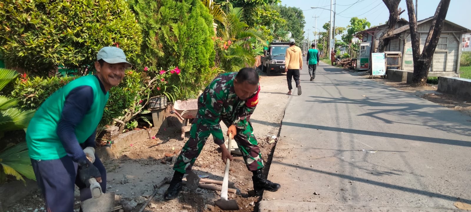 Babinsa Koramil 01/Demak Kota Melaksanakan Karya Bakti Pelebaran Jalan Bersama Warga