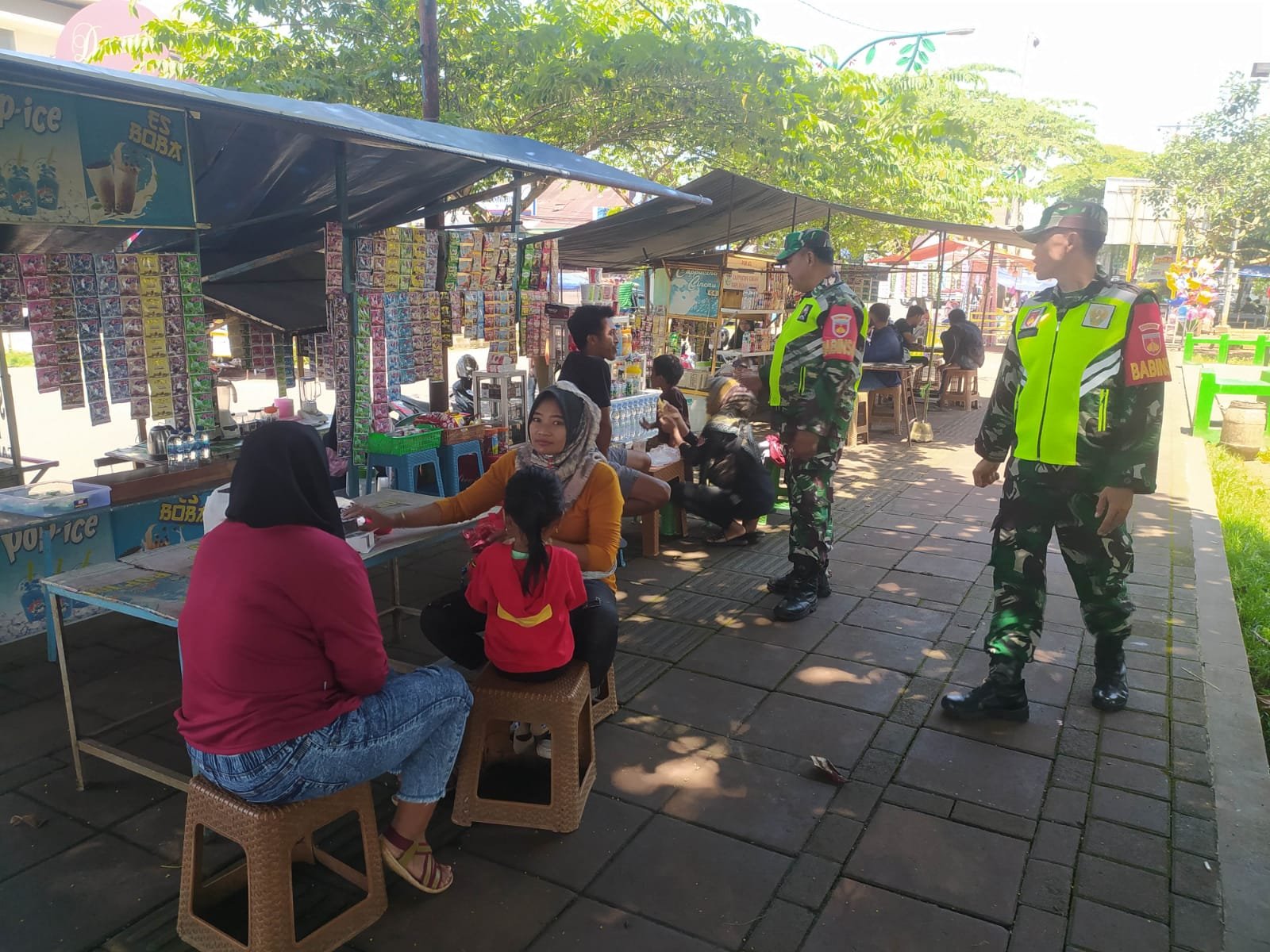 Selain melaksanakan patroli dalam menjaga Kamtibmas, Babinsa juga memberi himbauan kepada warga dan para pedagang yang berada disekitaran Alun-alun untuk tetap kebersihan lingkungan dan waspada dalam menjaga keamanan.