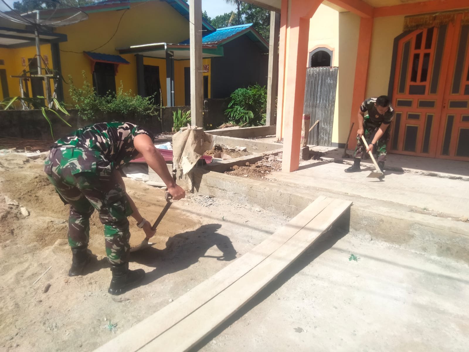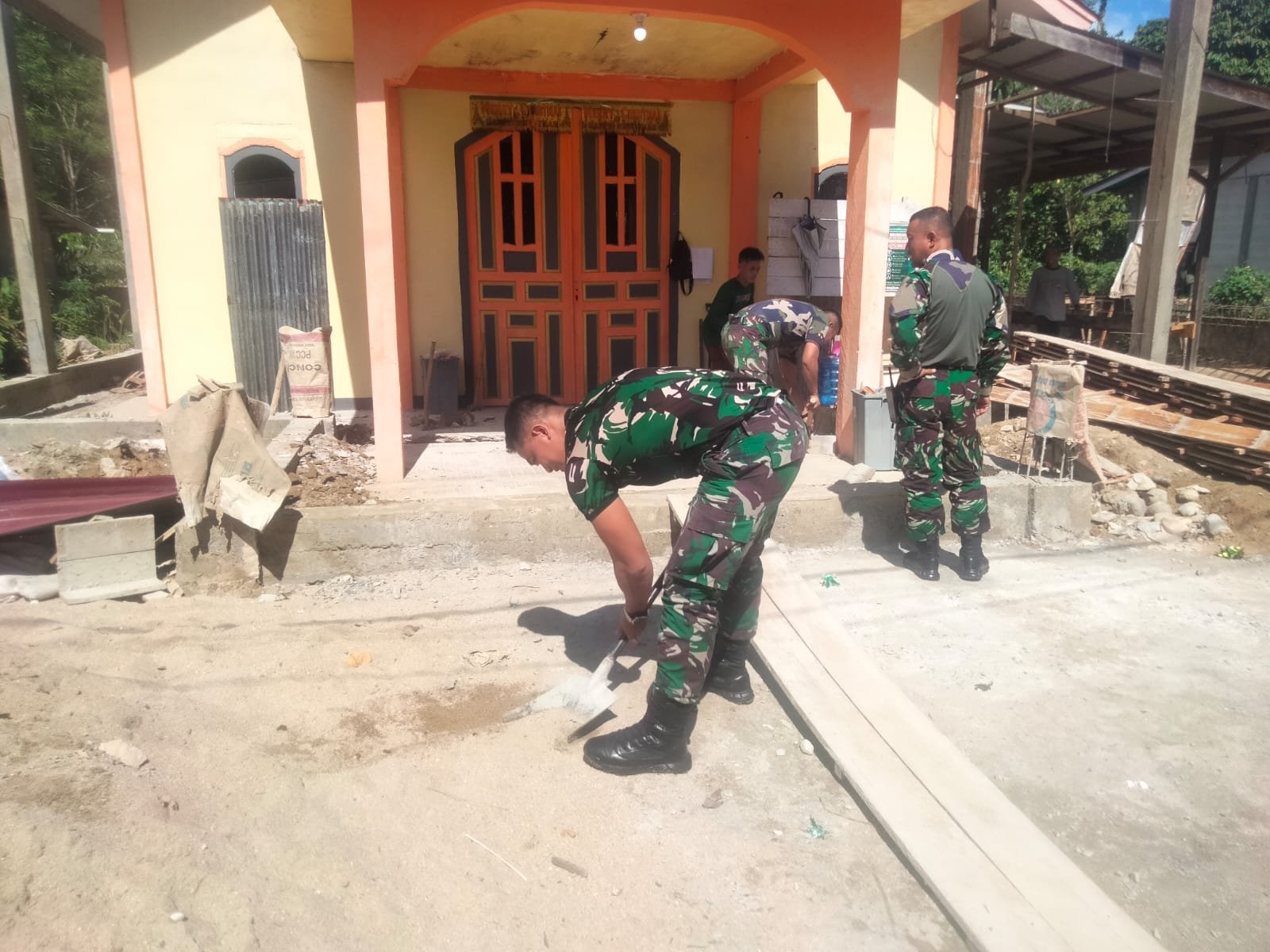 BN NEWS || Sajingan Besar, Sambas – Dalam mewujudkan toleransi umat bergama di daerah perbatasan, Satuan Tugas Pengamanan Perbatasan (Satgas Pamtas) RI-MLY Yonarmed 16/TK membantu masyarakat sekitar dalam renovasi gereja GKE Gideon Tanjung yang terletak di Ds. Samaran, Kec. Sajingan Besar, Kab. Sambas.