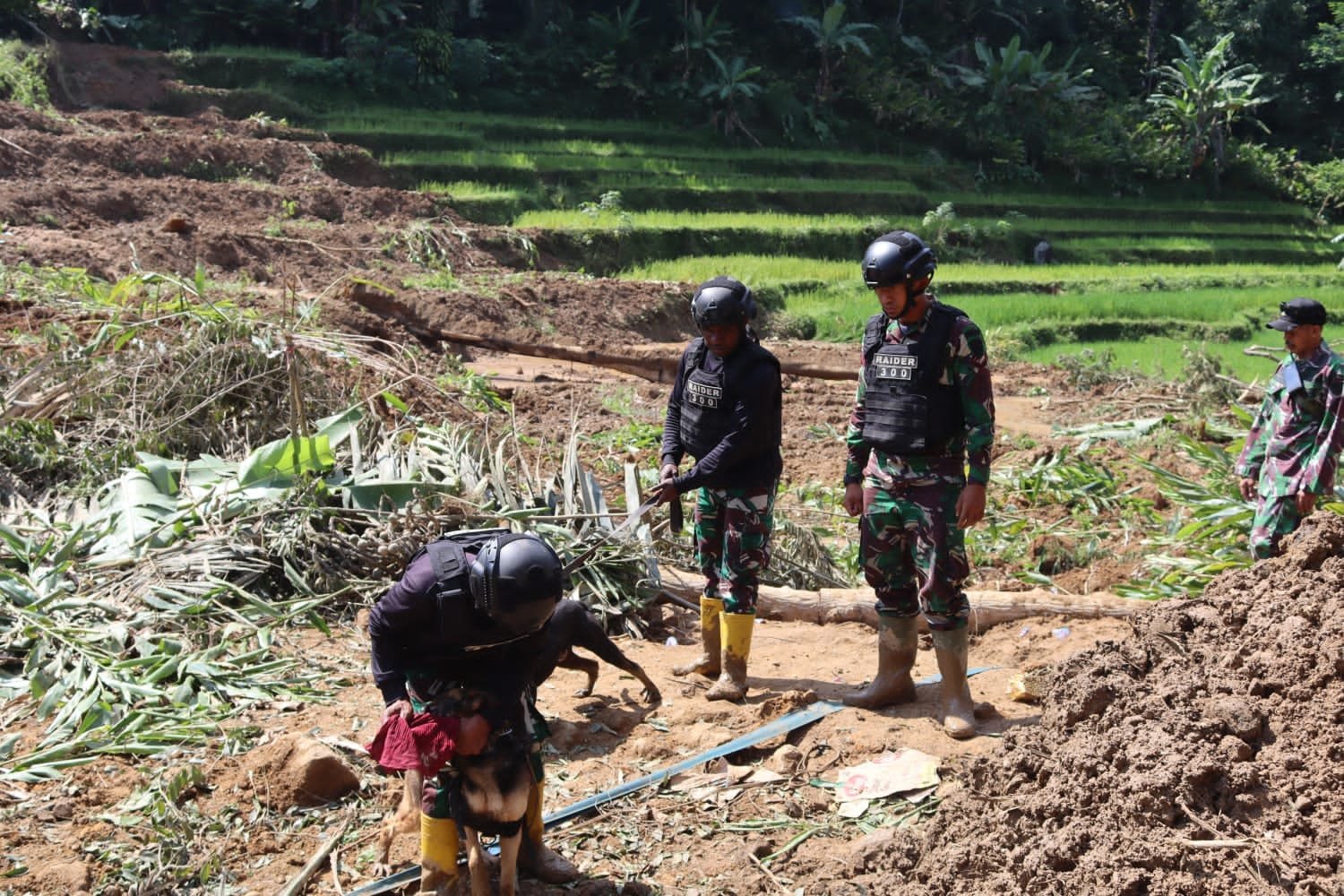 Berawal dari perintah Pangdam III/Siliwangi Mayjen TNI Kunto Arief Wibowo, S.I.P., pada tanggal 09 juli 2023 pukul 20.00 WIB melalui sambungan telepon kepada Danyonif Raider 300/Bjw agar Danyonif Raider 300 membatu pencarian jenazah korban longsor di Kab. Garut, dan segera berkoordinasi dengan Dandim 0611 Garut. Kemudian Danyonif Raider 300/BJW berkoordinasi dengan Dandim 0611 Garut Letkol Czi Dhanisworo, S.Sos. Dari hasil koordinasi tersebut bahwa Tim K-9 Yonif Raider 300/Bjw pada hari Senin tanggal 10-07-2023 pukul 07.00 WIB sudah bergabung dengan Personel Kodim 0611 Garut di lokasi longsor di Kampung Lembur Tengah Rt.03 Rw.09 Desa. Sukanagara Kec. Pandey Kab. Garut.