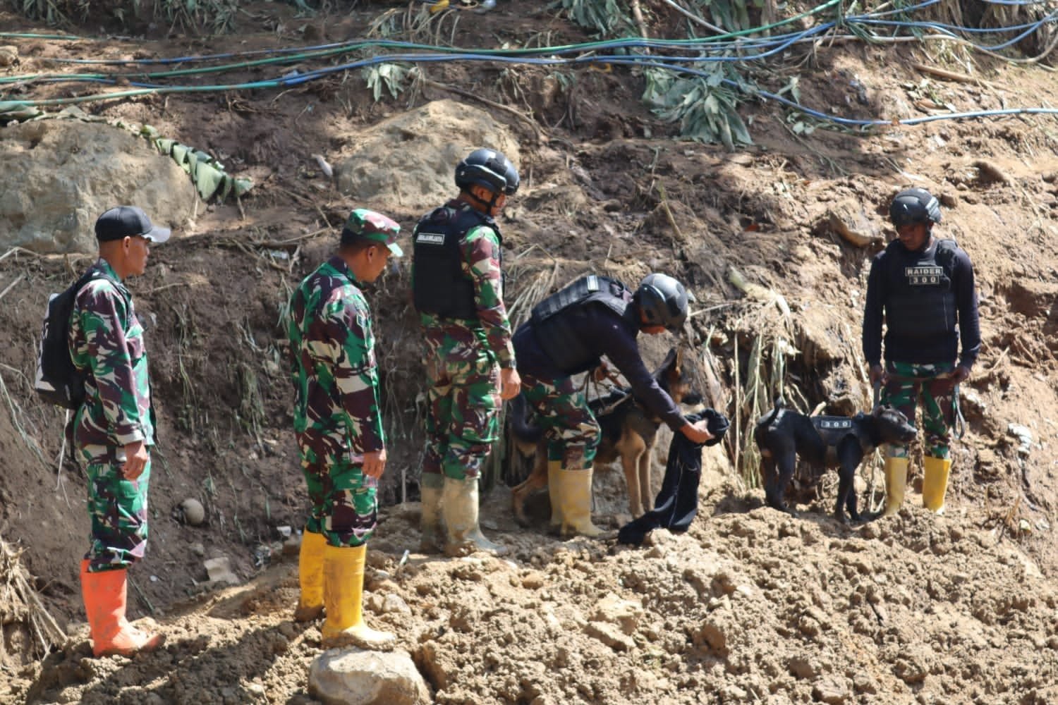 Adapun Tim yang di BKO ke Kodim 0611 Garut adalah 4 orang personil Yonif Raider 300/Bjw, 2 ekor Doggy K-9 Raider 300 yaitu Naura dan Kout. Dalam pencarian tersebut Naura dan Kout bahu membahu secara bersamaan mencari jenazah di lokasi longsor.