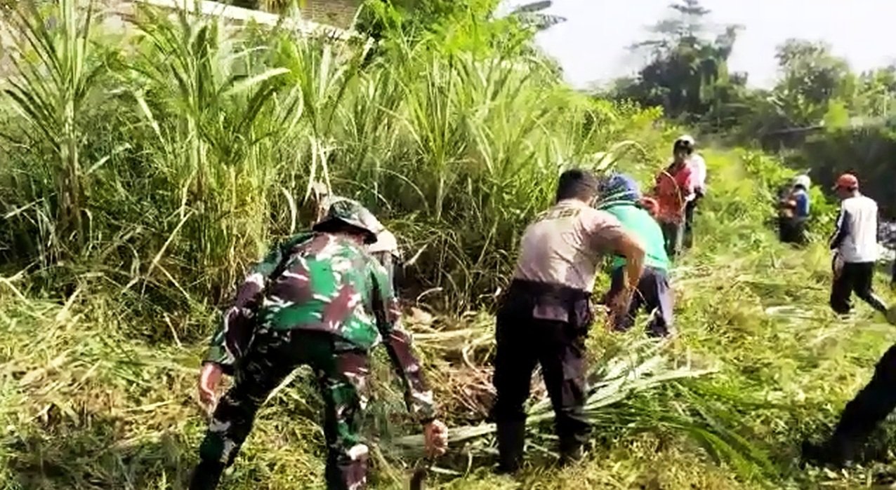 Diterangkan Danramil 02 Jatibarang Kodim 0713 Brebes Letda Infanteri Sunardi bahwa pembersihan itu menggunakan mesin potong rumput, parang, dan sabit.