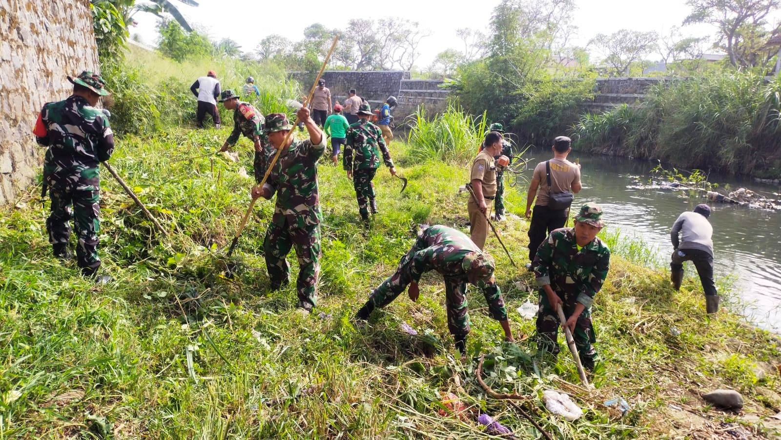 BN News. Brebes || Puluhan warga masyarakat Desa Kemiriamba Kecamatan Jatibarang Kabupaten Brebes Jawa Tengah dibantu TNI-Polri, Satpol PP, dan petugas pengelola irigasi melakukan pembersihan semak belukar dan sampah di bantaran Sungai Sibiuk Jatibarang. Kamis (13/7/2023).