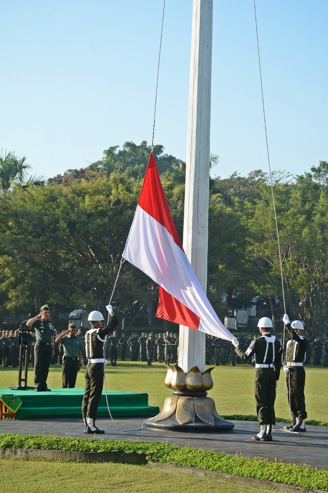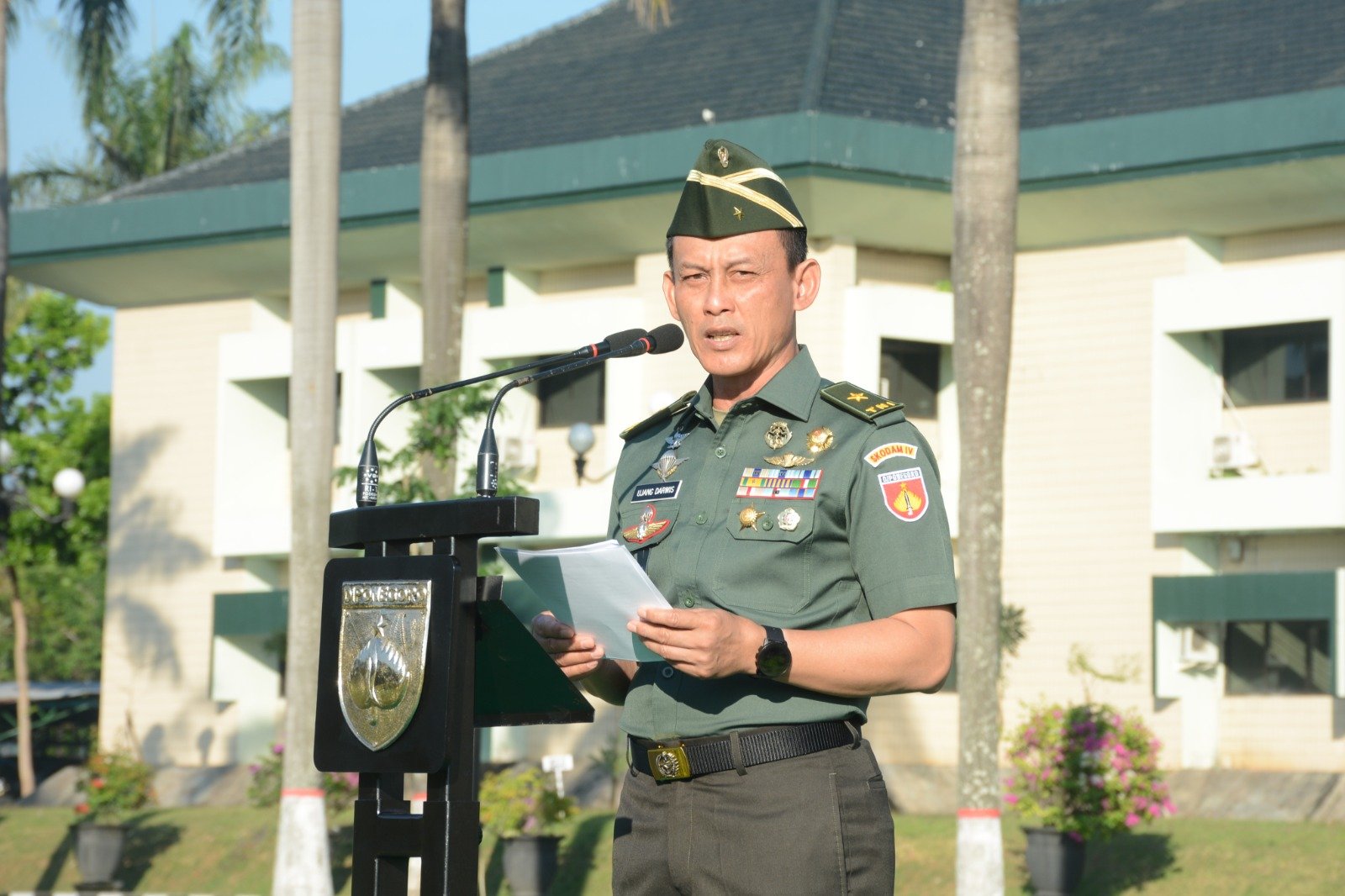 BN News. Semarang || Kasdam IV/Diponegoro Brigjen TNI Ujang Darwis, M.D.A., bacakan sambutan Panglima TNI Laksamana TNI H. Yudo Margono, S.E., M.M., C.S.F.A., pada Upacara Bendera bulanan 17-an yang didalamnya Panglima TNI mengucapkan terimakasih atas kinerja, dedikasi, profesionalisme, dan kinerja maksimal yang membuat TNI menjadi instansi paling dipercaya masyarakat. Senin (17/7/2023).