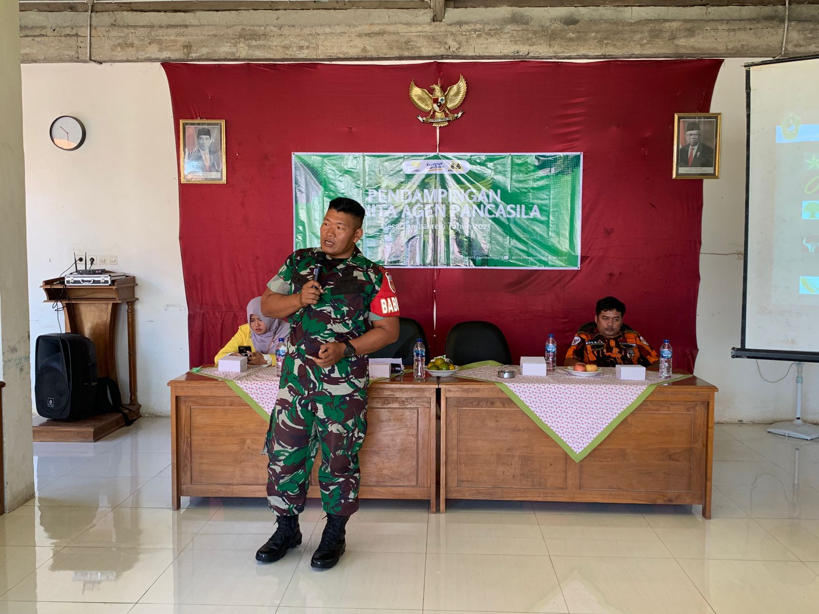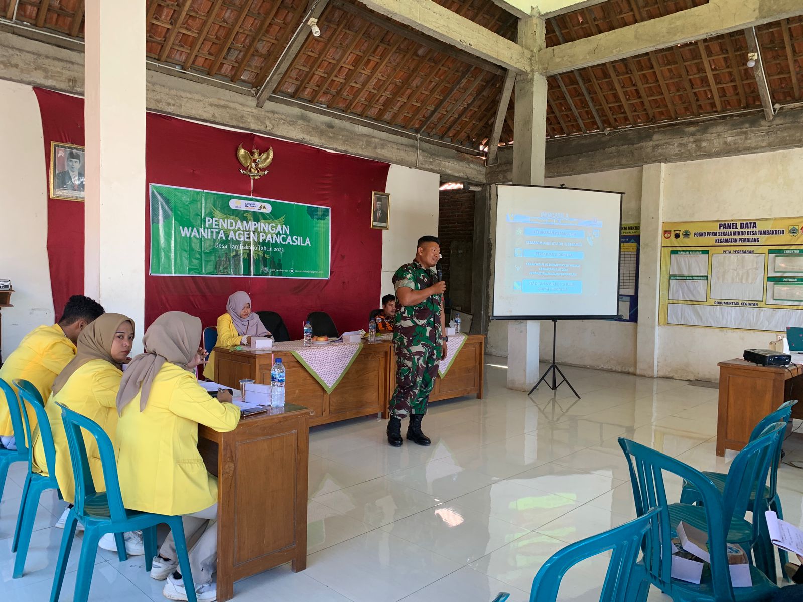 BN News. Pemalang || Babinsa Koramil 01/Pemalang Kodim 0711/ Pemalang desa Tambakrejo Kopda Endi Kuswoyo memberikan sosialisasi kepada Mahasiswa UNNES Semarang yang sedang melaksanakan KKN dan warga desa Tambakrejo tentang Wanita Agen Pancasila , bertempat di Aula Balai Desa Tambakrejo kecamatan Pemalang kabupaten Pemalang , Sabtu (29/07/2023) .