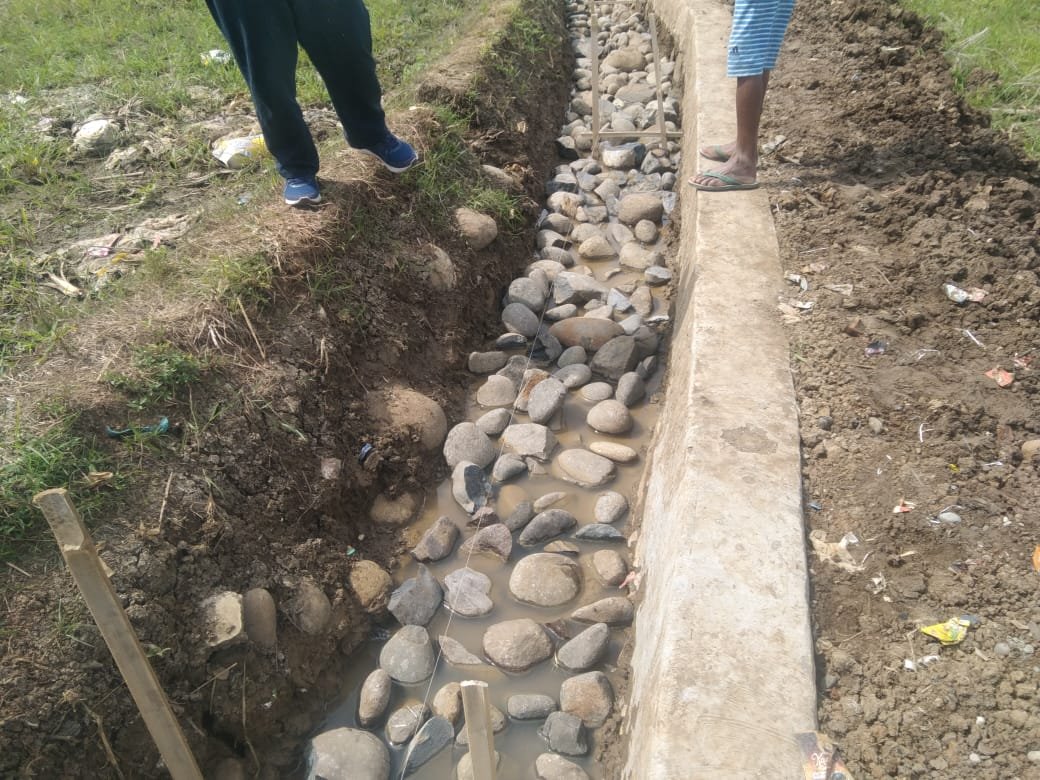 Dari hasil pantauan awak media pembangunan irigasi di dusun 3 dengan volume pekerjaan panjang 515 meter, pagu dana Rp 81.750. 000, sumber dana dari Dana Desa ( DD ) Tahun anggaran 2023, untuk pasangan batu bagian lantai dan sebagian dinding menggunakan batu blonos.