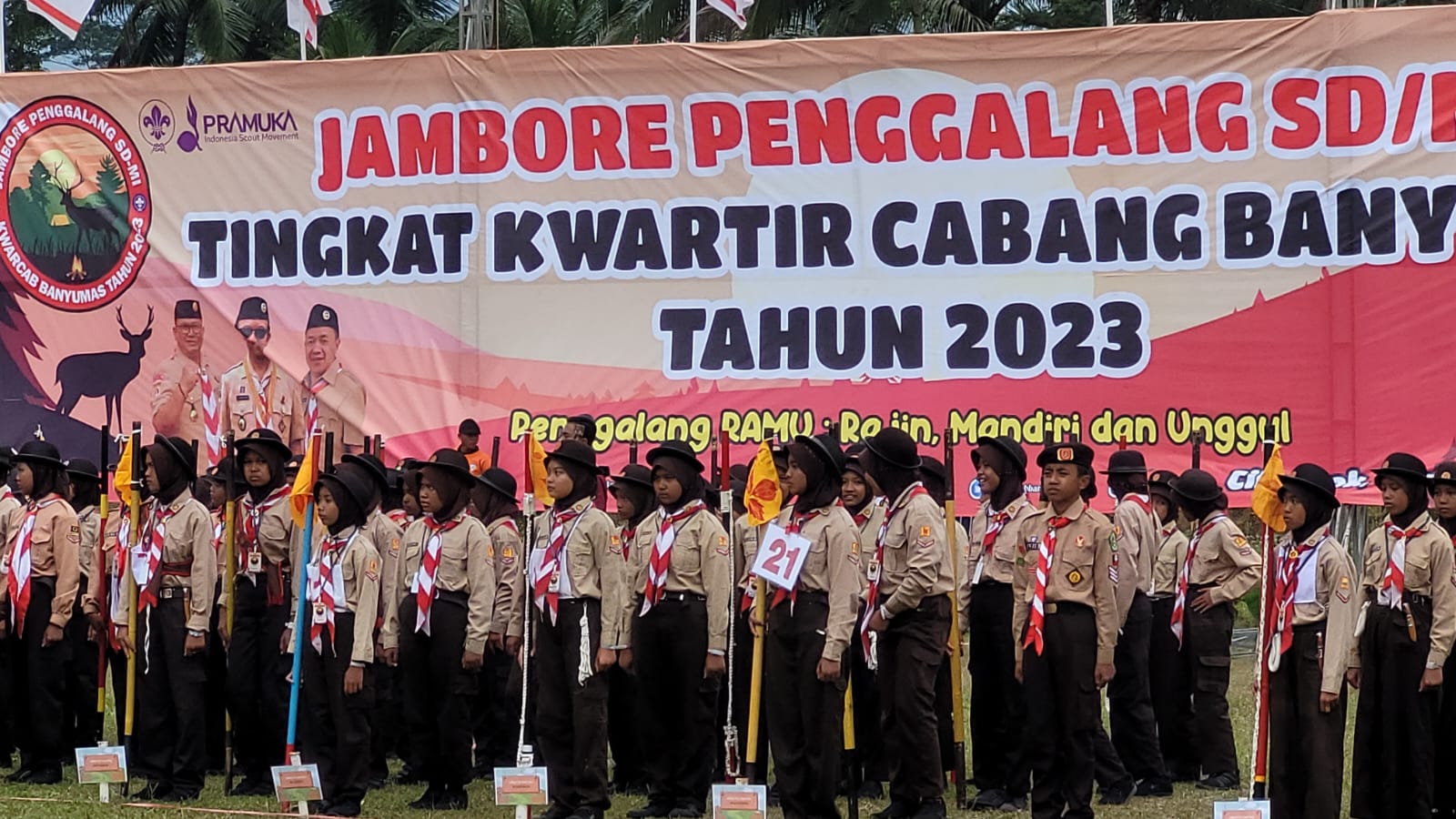 BN News. Banyumas || Gerakan Pramuka Kwartir Cabang (Kwarcab) Banyumas menggelar Jambore Cabang bagi Penggalang SD/MI, Kamis-Sabtu 24-26 Agustus 2023 di Lapangan Desa Sokawera Kecamatan Cilongok. Kegiatan dibuka oleh Ketua Majelis Pembimbing Cabang (Mabicab) Kak Ir Achmad Husein diikuti 416 pramuka penggalang dari 52 regu utusan Kwarran di Kwarcab Banyumas.