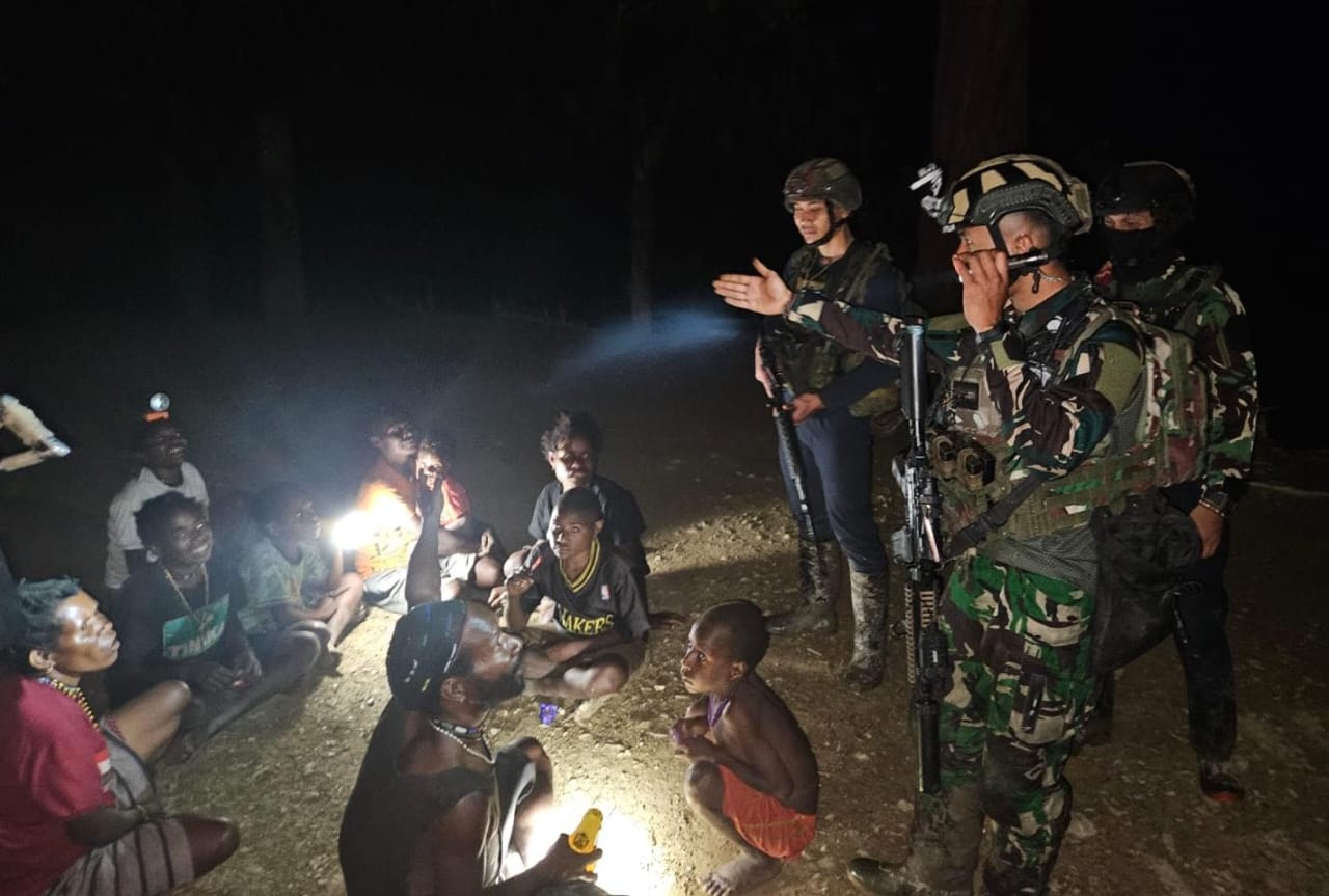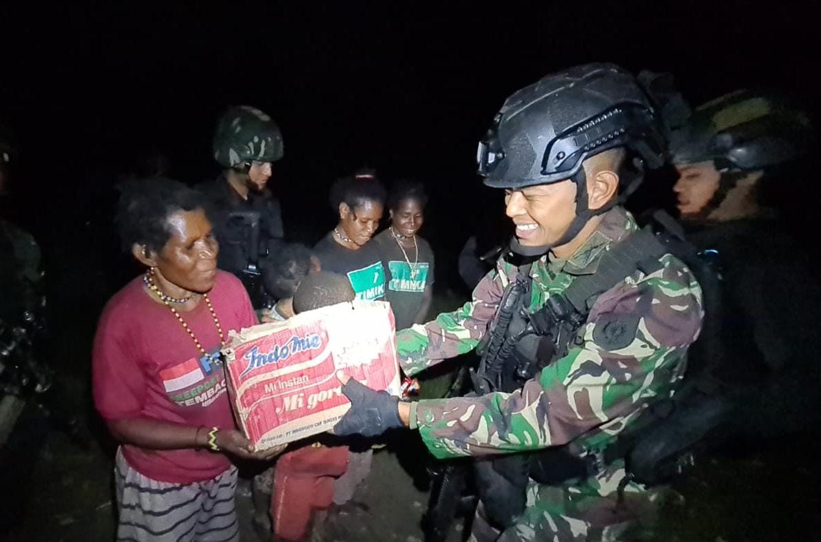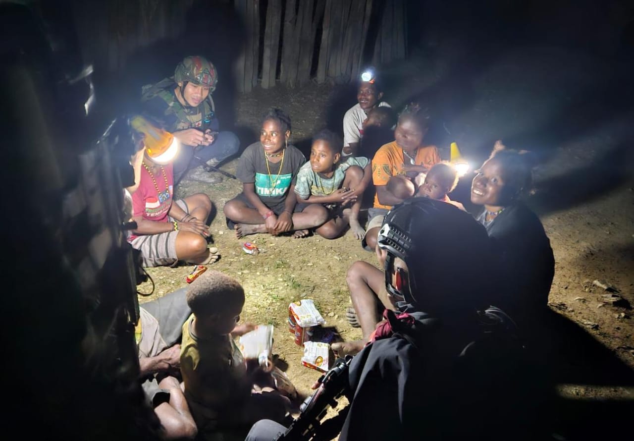 Satgas Yonif Para Raider 330/Tri Dharma di Pos Titigi tak mau tinggal diam melihat kesulitan yang dihadapi warga di sekitarnya. Ditengah gelapnya malam, Para Ksatria Tri Dharma menembus lebatnya belantara Papua, mendatangi honai-honai untuk membagikan Sembako dan memberikan bantuan pengobatan kepada warga di Kampung Munumai, Kab. Intan Jaya, Prov. Papua Tengah, pada Minggu (03/09/23)