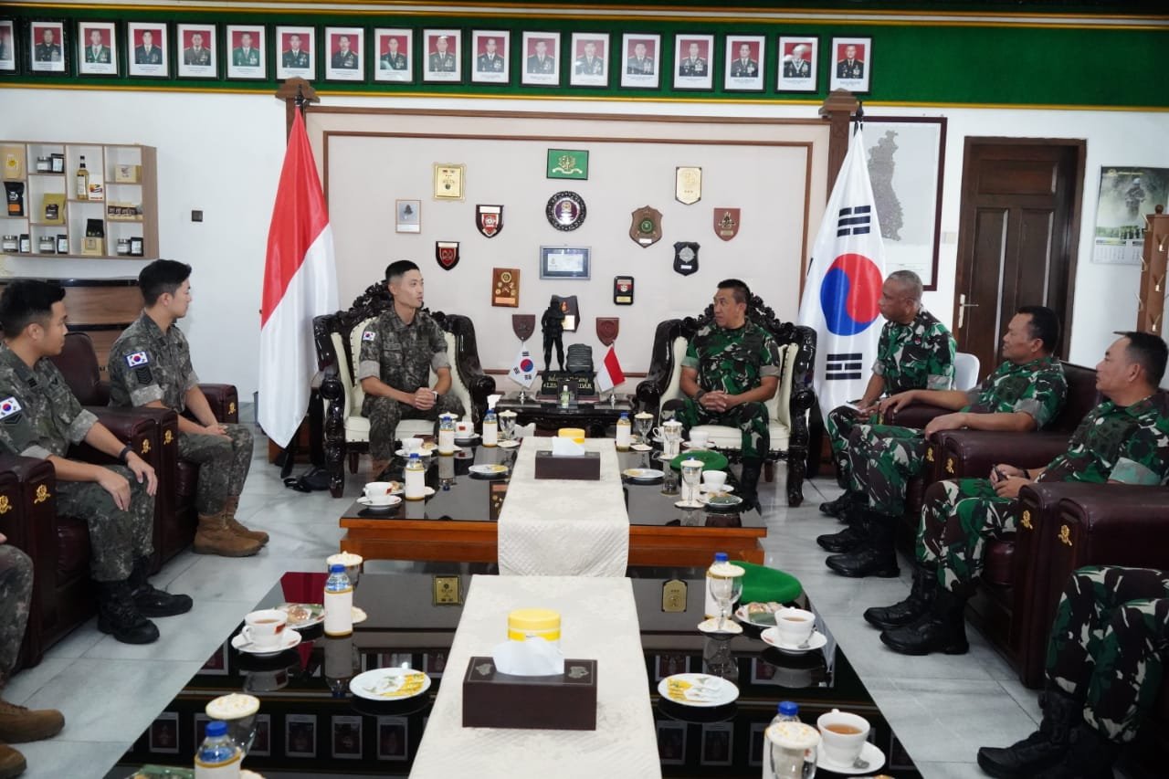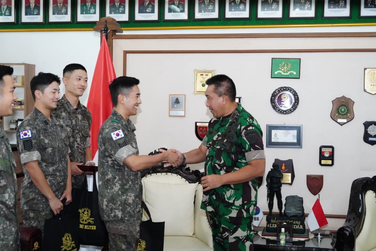 BN News. Magelang || Gubernur Akademi Militer Mayjen TNI R. Sidharta Wisnu Graha, S.E. menerima kunjungan Perwira dan Taruna Akademi Militer Korea Selatan (KMA) yaitu Captain Je Won Jang Min (Perwira Pendampin), Cadet Sung Kim (Taruna), Cadet Lim Seungjoon (Taruna), Cadet Jiwon Park (Taruna) yang bertempat di Ruang Sudirman Main Hall. Selasa (05/09/2023).
