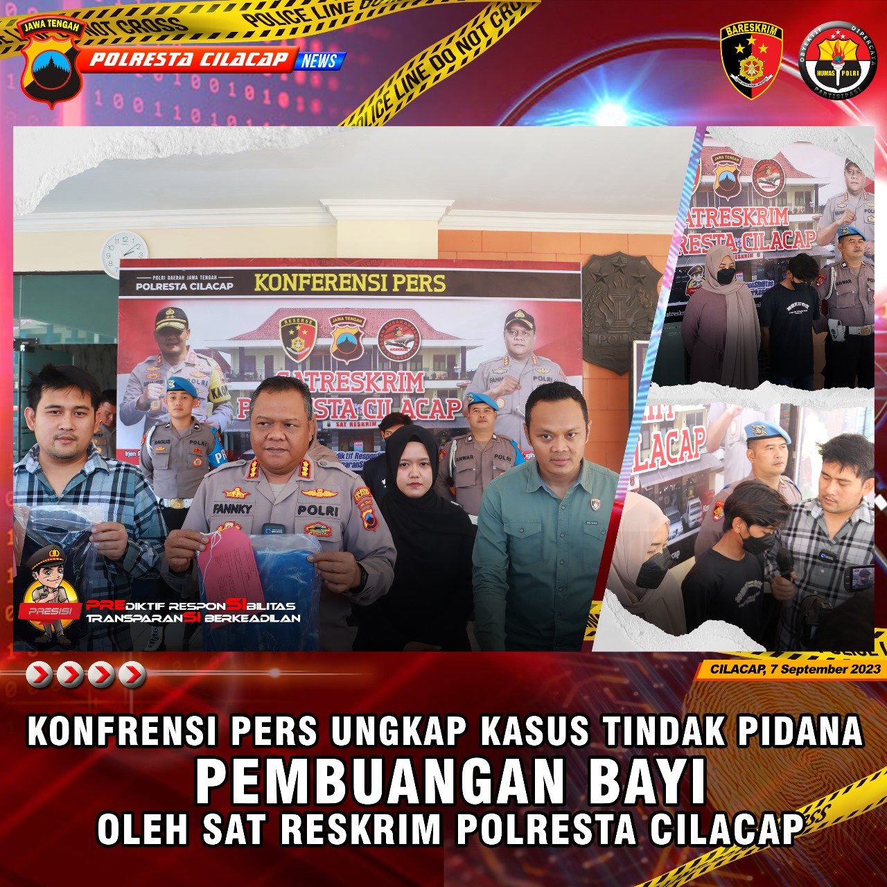BN News. Cilacap || Polisi berhasil menangkap dua tersangka, berinisial T T (40) seorang wanita dan N A S (25) seorang pria, dalam kasus pembuangan bayi yang terjadi pada tanggal 12 Agustus 2023, sekitar pukul 01.30 WIB di Kecamatan Bantarsari Kabupaten Cilacap. Kejadian ini pertama kali diketahui oleh Ibu Suwarni ketika suara tangisan bayi.