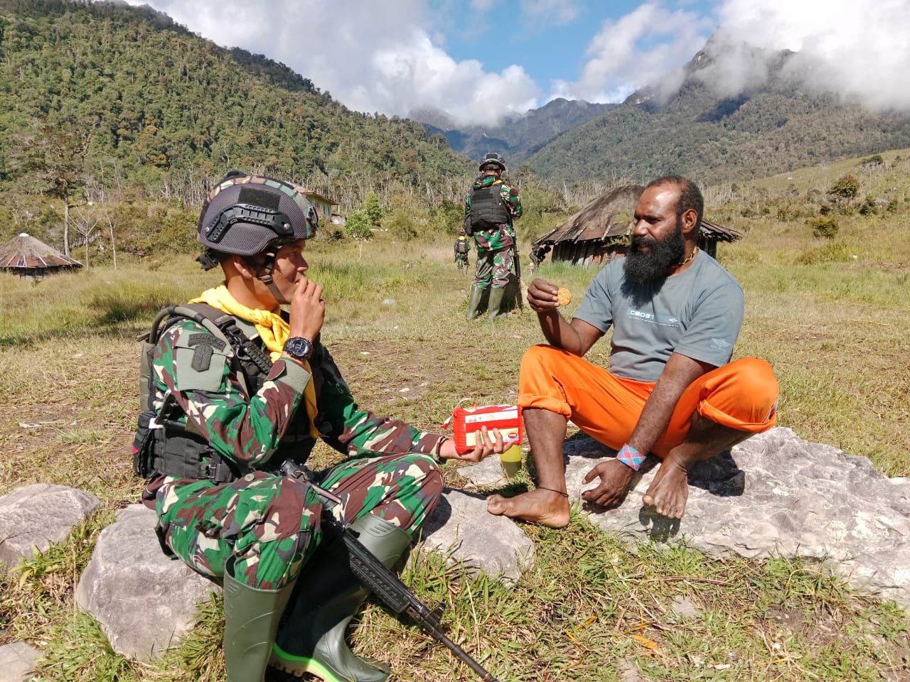 BN NEWS || Kab. Puncak – Hari ini, Satuan Tugas (Satgas) Mobile Raider 300 Siliwangi melakukan kegiatan yang tidak biasa. Mereka tidak hanya menjalankan tugas keamanan, tetapi juga berinteraksi dengan masyarakat setempat dalam suasana santai.