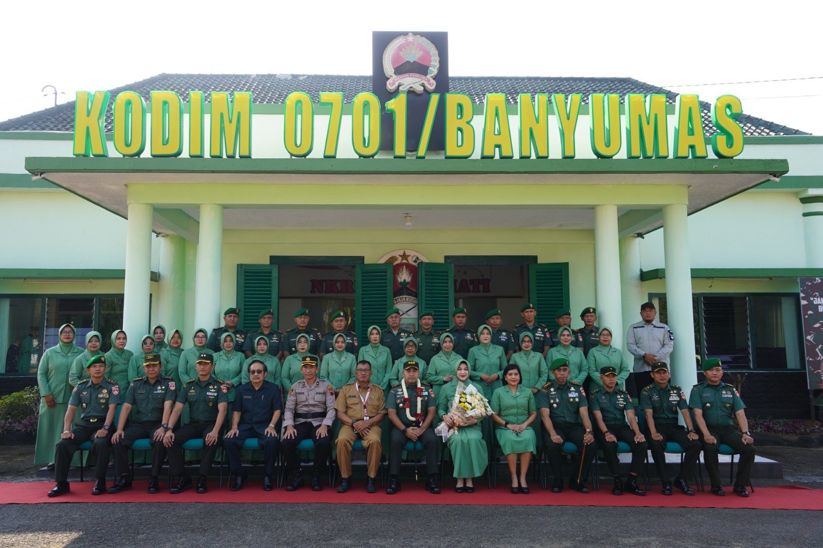 Kedatangan Danrem disambut oleh Dandim 0701/Banyumas Letkol Arm Ida Bagus Adi P. S.T., M.Han, beserta Ketua Persit KCK Cabang XVI Kodim Banyumas beserta Forkopimda Banyumas, serta melaksanakan Jajar Kehormatan, dan pengalungan bunga mewarnai prosesi penyambutan tersebut. Selanjutnya Danrem menerima paparan dari Dandim serta melakukan tatap muka dan dialog dengan Militer, PNS dan Persit di Aula Kodim setempat serta pemberian bantuan kepada anak yatim, penderita penyakit berat dan penyandang disabilitas yang kesemuanya adalah KBT Kodim 0701/Banyumas.
