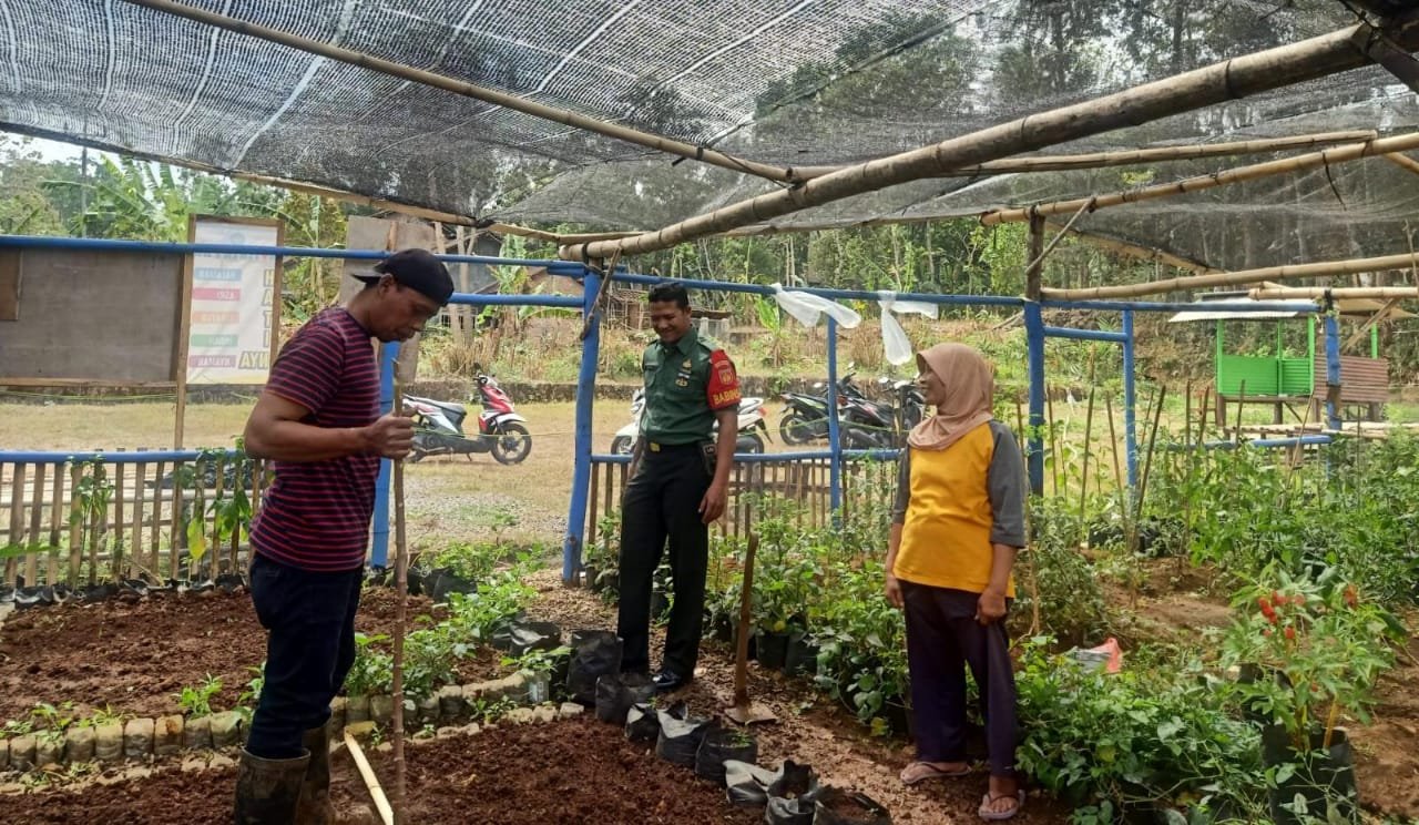 BN News. Boyolali || Guna tercapainya program Pembinaan Kesejahteraan Keluarga (PKK) di desa Binaan, Babinsa Koramil 16/Karanggede Kodim 0724/Boyolali Serda Suryadi melaksanakan pendampingan penanaman sayur di Kebun Gizi Dahlia yang dimiliki PKK Desa Sendang Kecamatan Karanggede Kabupaten Boyolali. Rabo ( 13/09/23).