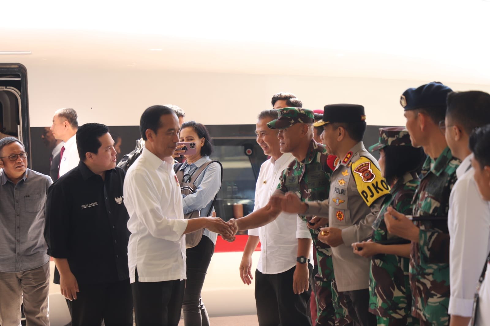 Diakhir kunjungannya, setelah menyempatkan waktu kepada awak media untuk melaksanakan wawancara, Presiden Joko Widodo beserta rombongan kembali ke Jakarta menggunakan Kereta Cepat dari Stasiun Padalarang ke Stasiun KCJB Halim. (Penrem062).